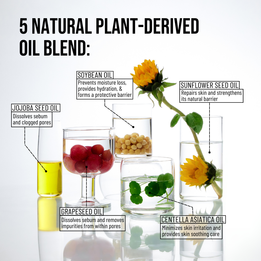 PREMIUM BOTANICAL OIL BLEND: Contains nourishing oils including Sunflower Seed Oil, Jojoba Oil, Macadamia Oil, and Squalane to condition skin while cleansing, leaving complexion soft and balanced after use