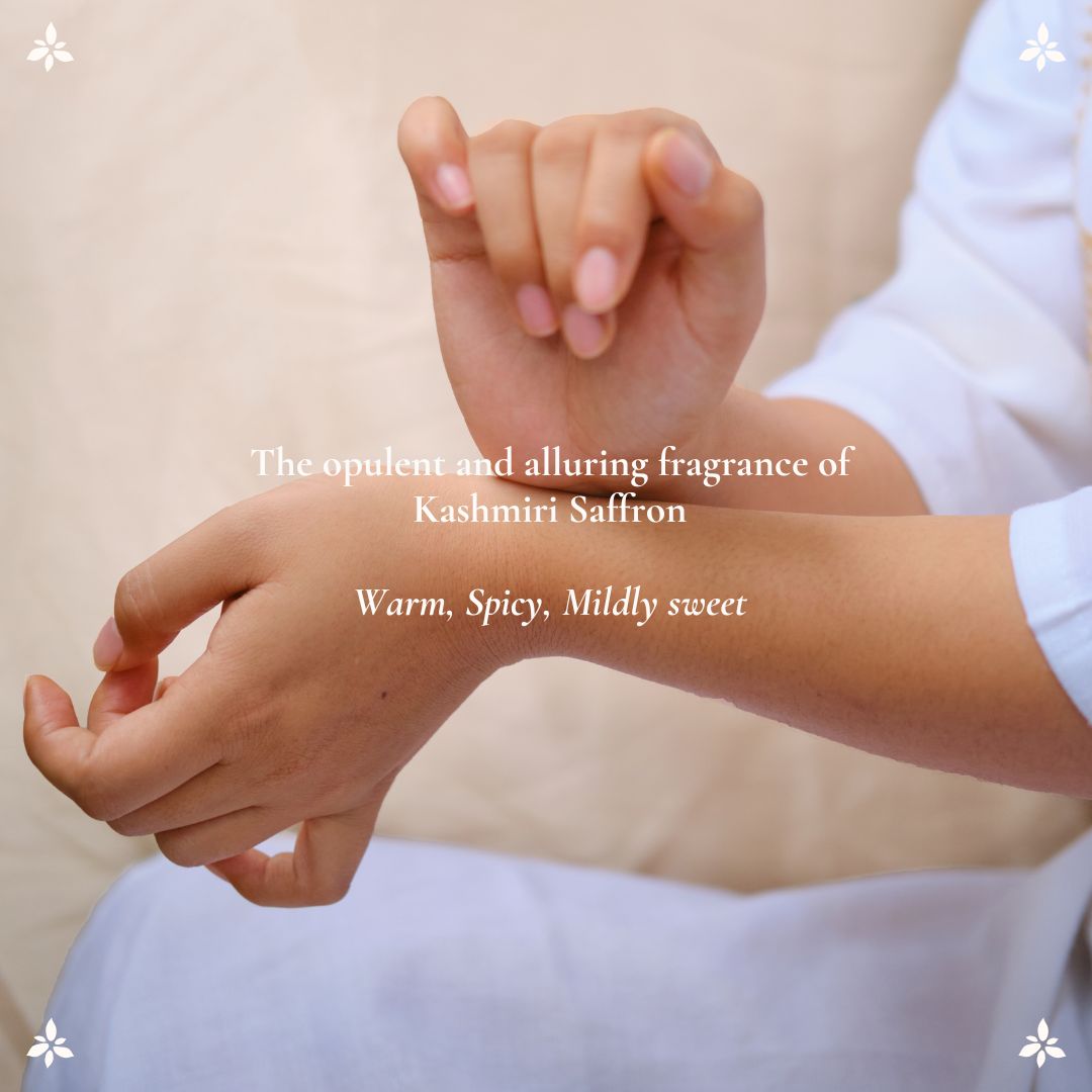A fresh, energizing fragrance: The Boond Kesar fragrance is the opulent, and alluring fragrance of Kashmiri Saffron.Alcohol-free, natural & pure: The fragrance is completely pure and natural. It does not contain alcohol or any chemicals. It is made from natural materials that are sourced responsibly from across India.