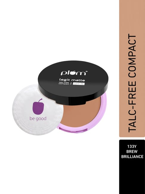 The secret to photo-ready skin lies in the Plum Legit Matte Talc-Free Compact with SPF15 Brew Brilliance - 133Y (9 g). This lightweight compact powder delivers a soft-matte finish to smoothen the complexion and minimize the pores for an even-toned complexion. Also, the vitamin E and jojoba oil in this Plum matte compact help to nourish the skin and keep it hydrated. Plus, this compact contains SPF 15 to protect the skin from the sun's harmful rays.
