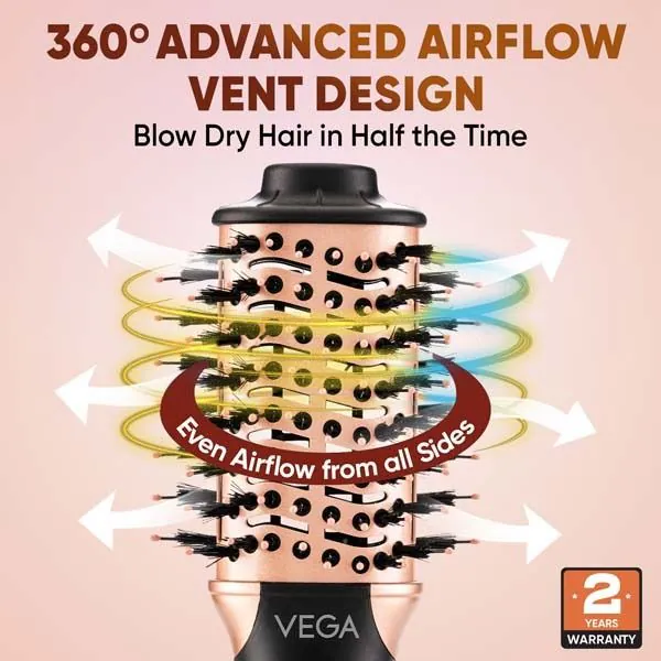 Vega LitStyle L3 Volumizer Hair Dryer Brush is the new compact hair dryer by Vega that comes with an advanced technology of hair drying and styling. Its compact and travel-friendly size offers the ease to make your hair drying and styling routine complete in half the time at home and also on the go. This mini hair dryer for women combines the cutting-edge features of a hair dryer and styler with Ceramic Coated styling surface for even heat distribution. The mini dryer brush also features 3 Heat / 2 Speed Settings that offer maximum versatility and smooth, frizz-free blowouts in half the time. You can choose between the 3 speed settings (III for Hot Air & High Speed, II for Warm Air & Medium Speed and I for Normal Air & High Speed) to suit your hair type. The flexible tangle-free bristles and smooth ball tips of the compact hair dryer delivers massaging effects on the scalp while its Anti-Scalding Tips ensure scalp protection and Vent Design delivers effective blow dry. Additional features include Ergonomic Design for a comfortable grip and 360° Swivel Power Cord for tangle-free hair drying and styling.