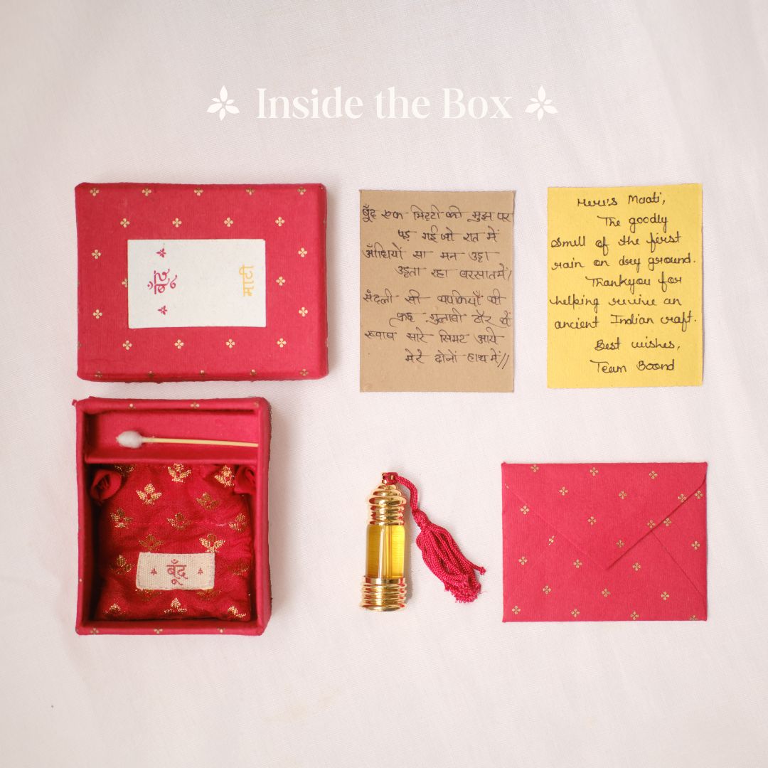 Earthy and woody fragrance: The Boond Maati(Petrichor), the goodly smell of first rain on dry ground (gilli mitti ki khushboo).Alcohol-free, natural & pure: The fragrance is completely pure and natural. It doesnt contain alcohol or any chemicals. It is made from natural materials that are sourced responsibly from across India.