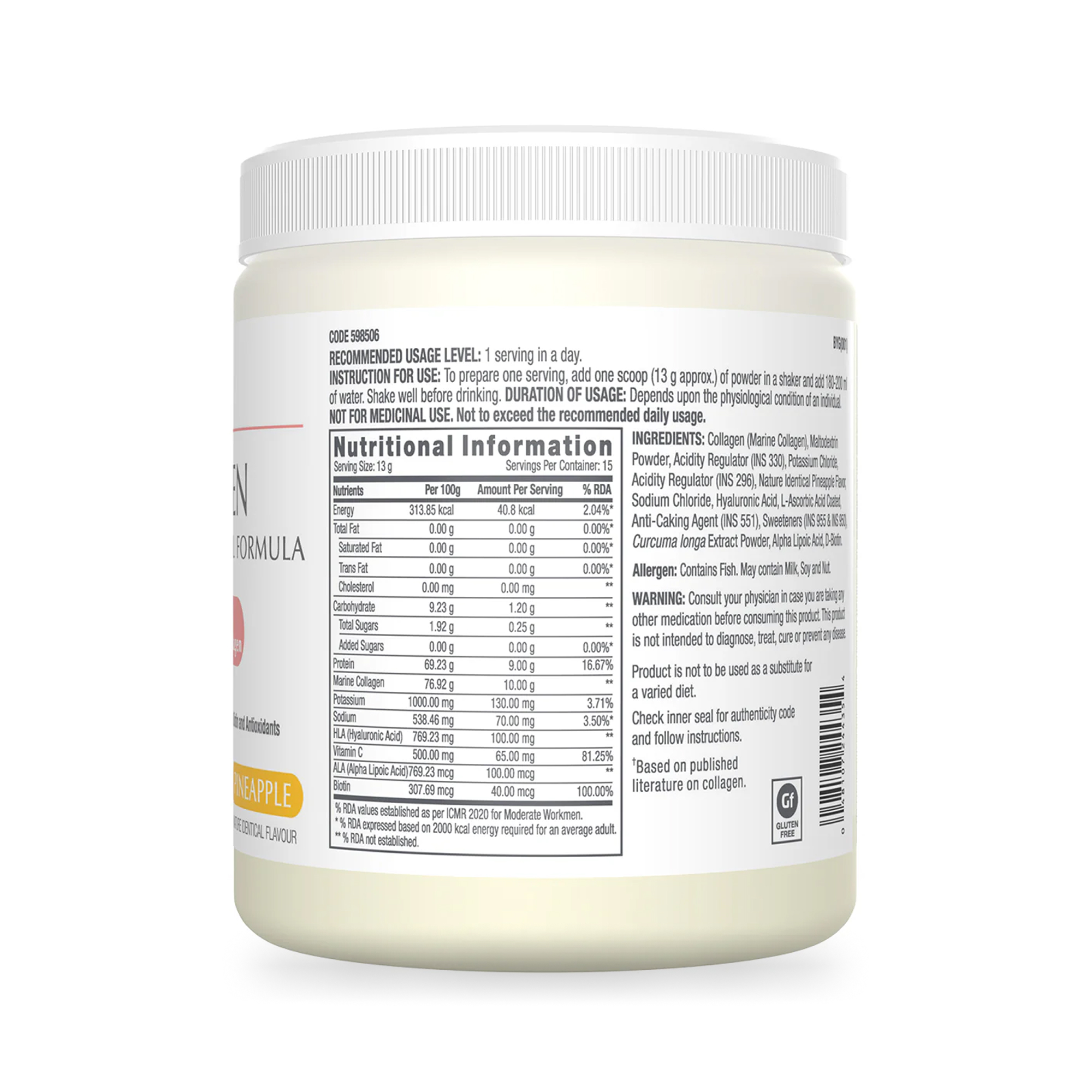 Creatine Monohydrate, Acidity Regulators (INS 330 & INS 296), Nature Identical Raspberry & Blueberry Flavour, Anti-Caking Agent (INS 551), Sweeteners (INS 960, INS 955 & INS 950), Color (INS 124)