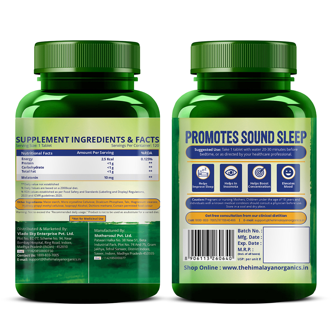 Vlado's Himalayan Organics Melatonin 10Mg (Healthy Sleep Cycle) - 120 Tablets