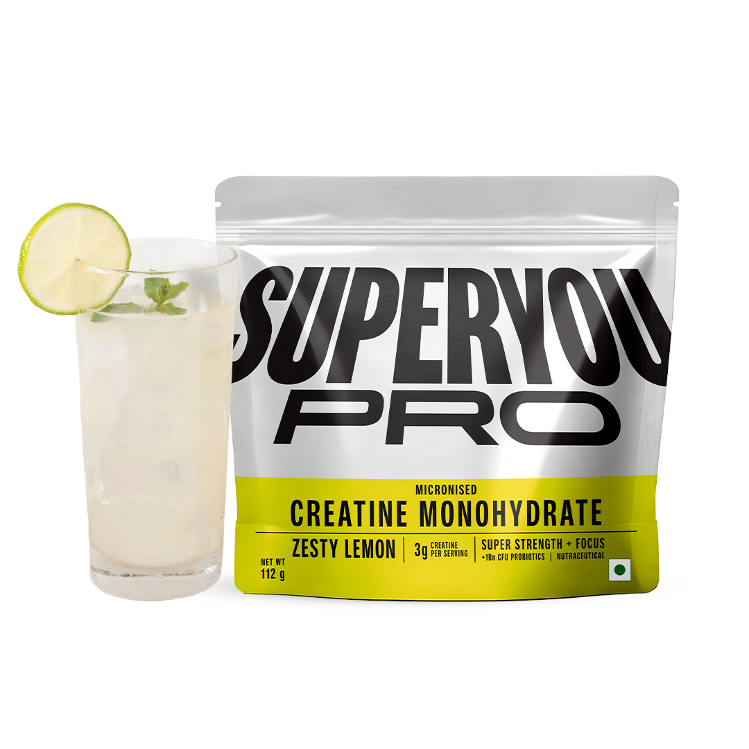 Introducing SuperYou Pro Creatine. A creatine that is easy on you, with added +1bn CFU probiotics and micronised to 200 mesh for easy digestion and absorption. Zero calories, Zero sugar, Zero artificial preservatives. 100% good for your muscle growth and recovery. Take it consistently, and youll be able to perform better, dance longer, work harder; basically show up stronger.