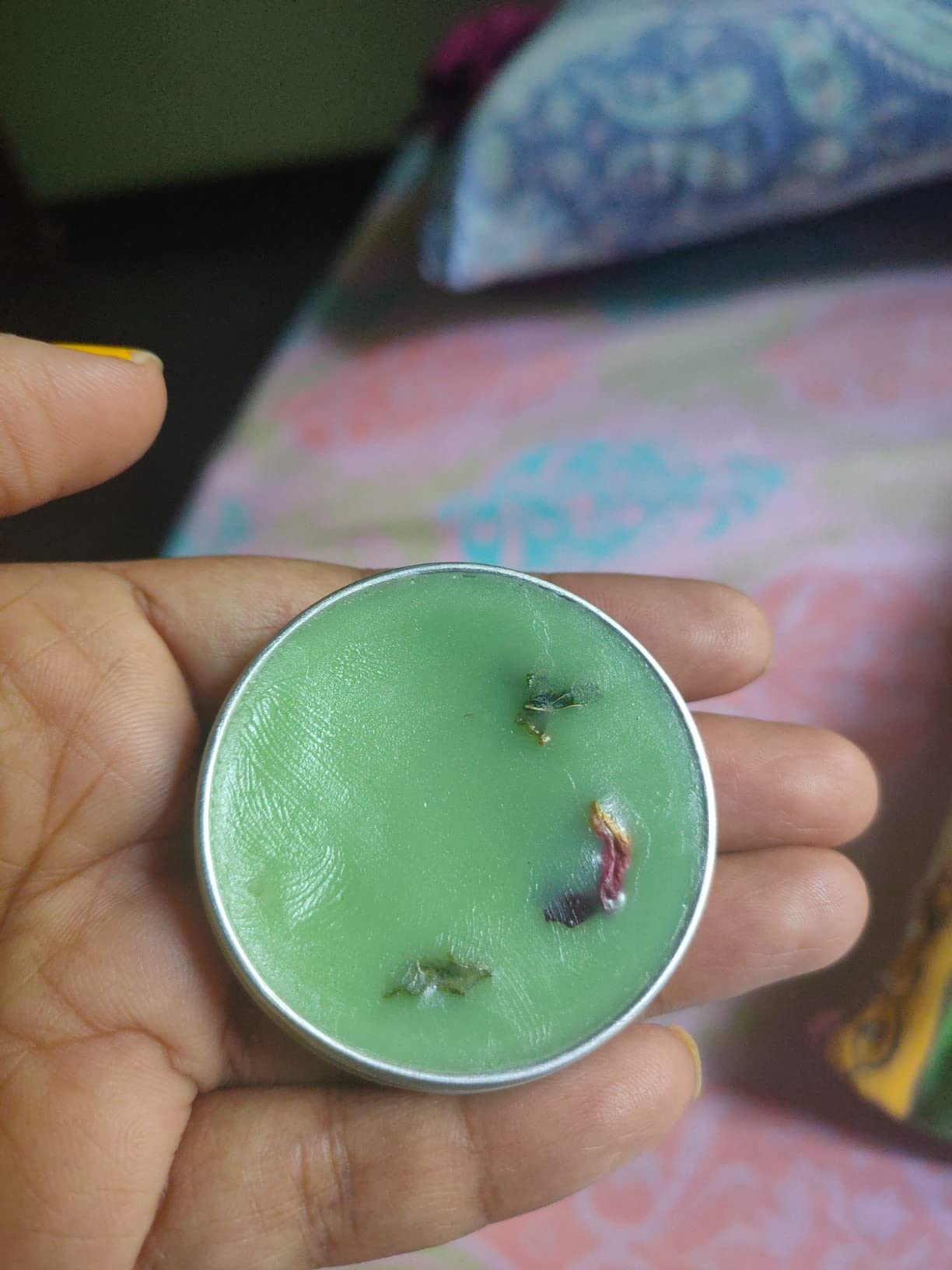 - Fresh Mint, Rosehip Oil, Rose, Desi Cow Ghee, Raw Eucalyptus Honey, Shea Butter, Kokum Butter, Carnauba Wax, Beeswax, Coconut Oil, Jojoba Oil & Sunflower Oil