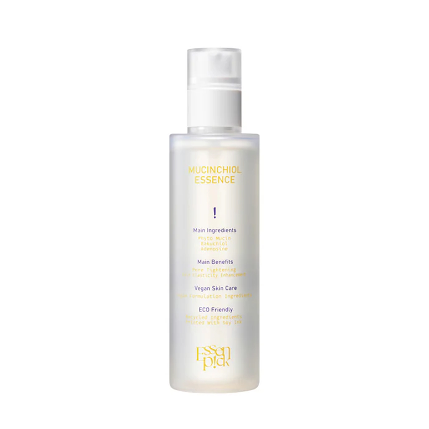 Rediscover smooth, firm, and radiant skin with Essenpick Mucinchiol Essence, a lightweight yet powerful essence designed to target enlarged pores and loss of elasticity. At its core is the MucinChiol Complex a unique blend of Phyto-Mucin and Bakuchiol that works to minimize pore appearance, improve skin texture, and deliver gentle anti-aging benefits without irritation. Infused with Adenosine, a proven wrinkle-care ingredient, this essence helps support skin firmness while smoothing fine lines. The formula also contains soothing botanicals that calm the skin, making it suitable even for sensitive skin types.