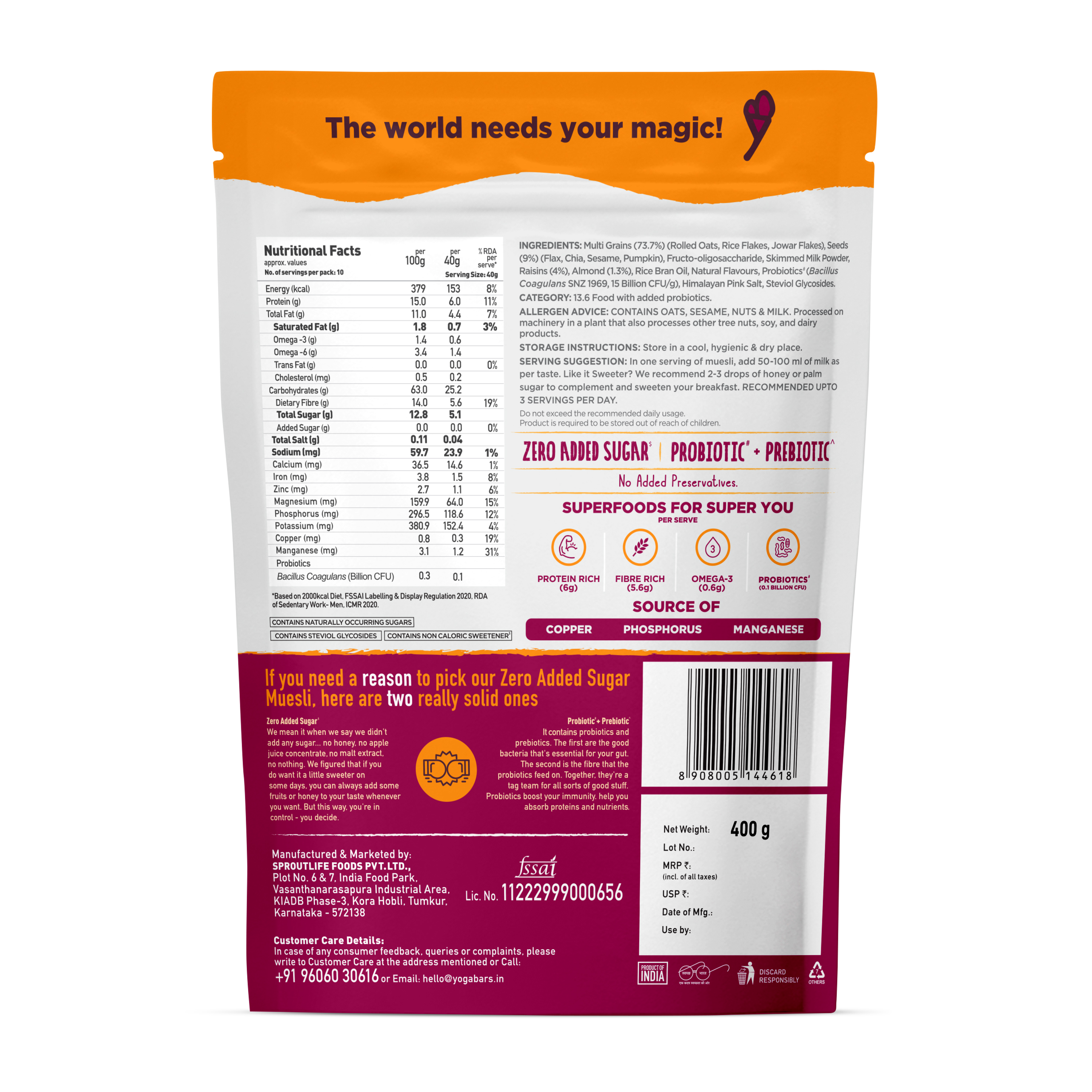 Yogabar Muesli Fruit and Nut 400g | Dark Chocolate Muesli 400g | No Added Sugar Muesli 400g | 400g Each