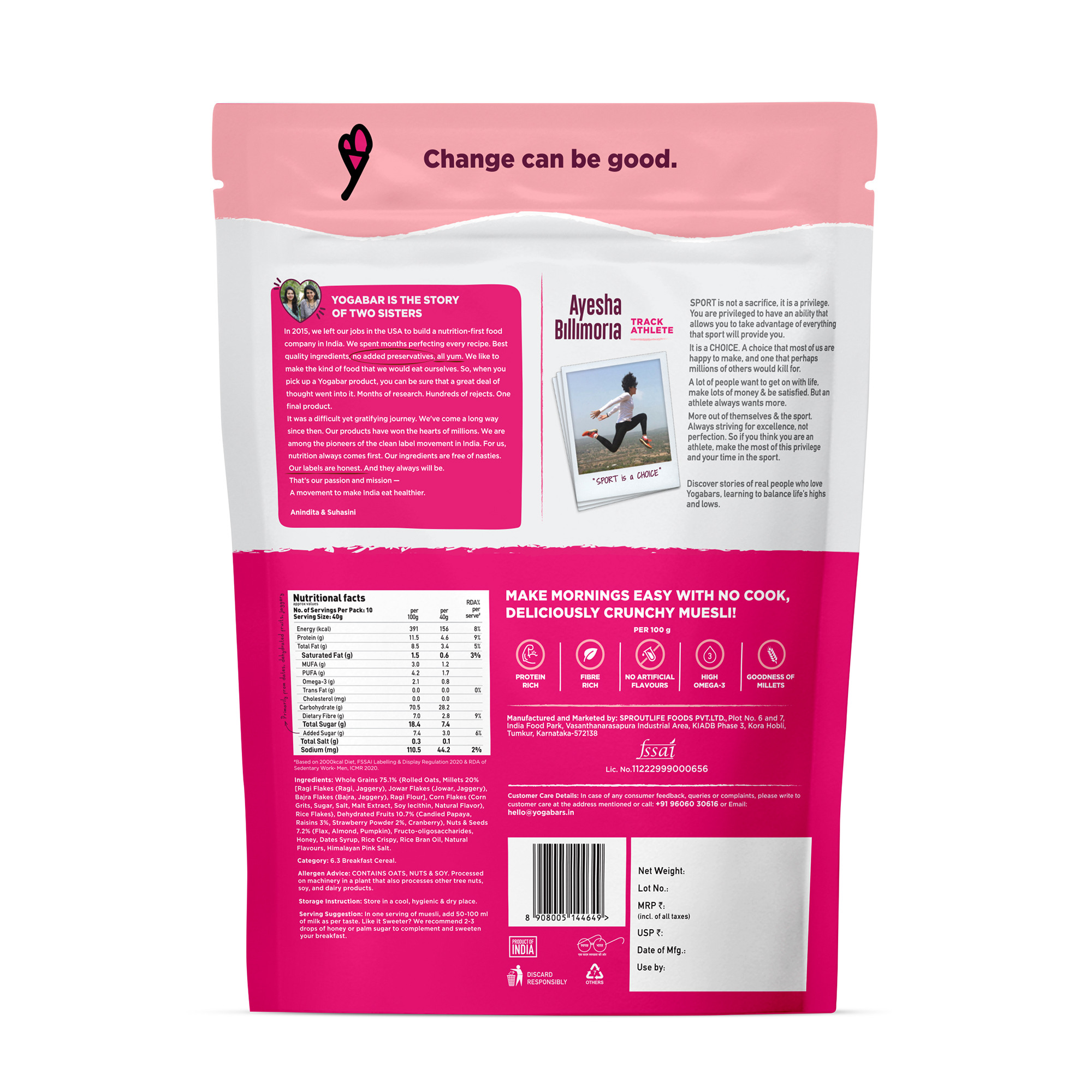 Yogabar is a leading Indian health and nutrition brand offering clean honest and delicious food for modern lifestyles Their range includes high-protein bars energy bars muesli oats nut butters and wholesome snacks made with minimally processed quality ingredients Free from artificial