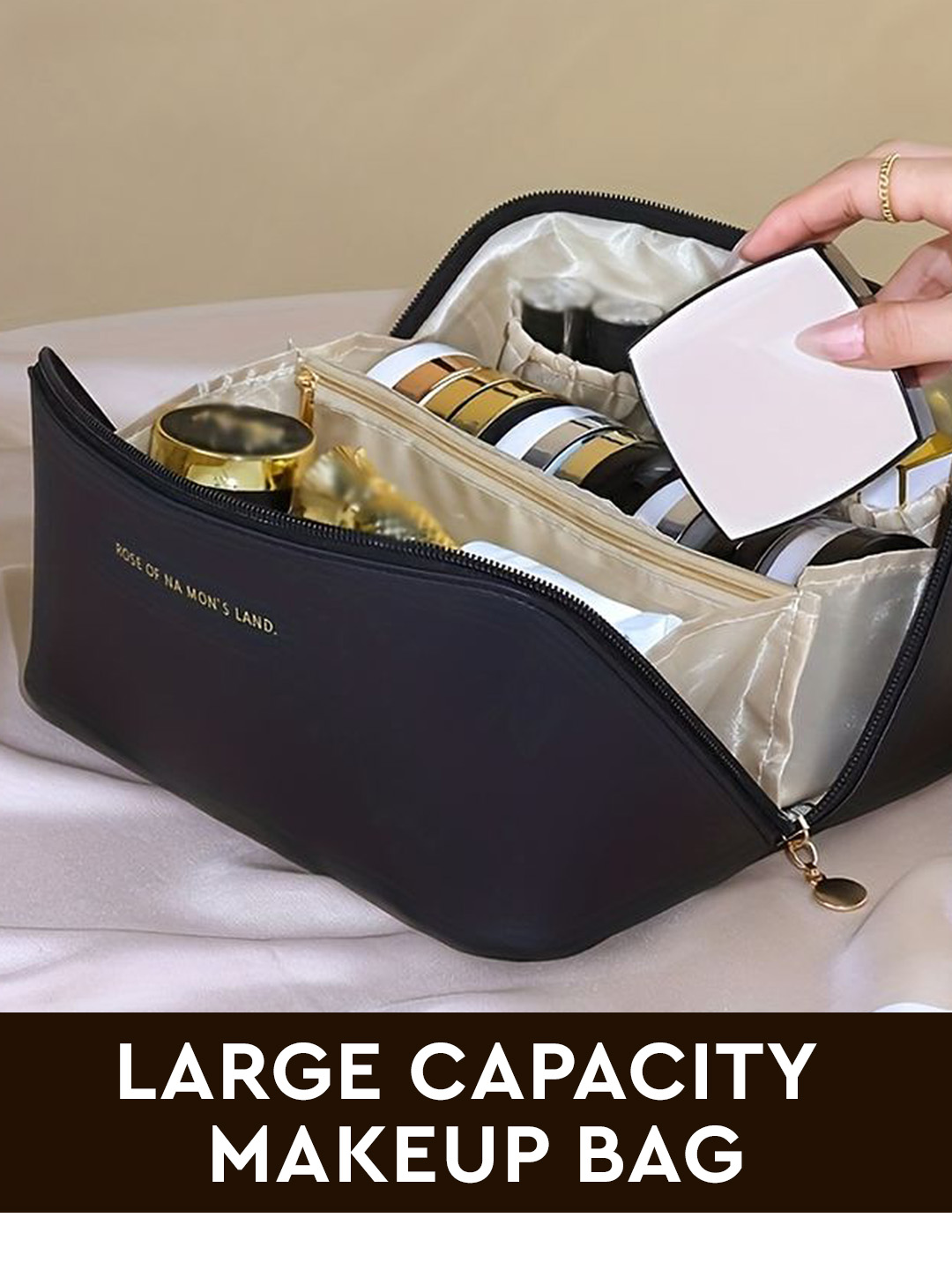 Pack Your Essentials: Organize your makeup, skincare, or other items you wish to carry. The bag's roomy interior and multiple compartments make it easy to store and access your items.