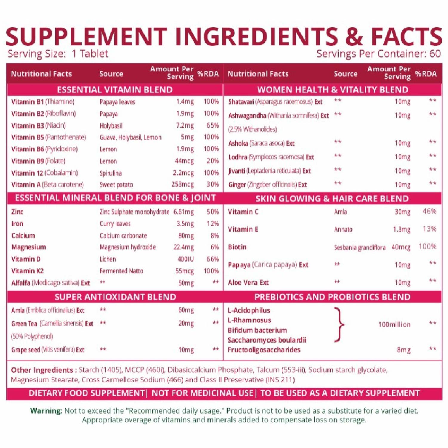 BE HEALTHY! BE STRONG! BE ACTIVE! With the increasing workload & sedentary lifestyle, women tend to ignore the nutritional deficiencies that their body signals time & again. Feeling fatigued, irritated, & stressed have become common. To support women in their nutrition journey, Himalayan Organics brings Multivitamin with Probiotics for Women so that they can stay on the top of their game always. With the power of over 30+ nutrients, 10+ natural extracts & 8+ essential blends, this supplement is every woman's head-to-heel wellness friend. A perfect balance of all ingredients increase energy levels, balance hormones, discourage stress, nourishes skin & promote a youthful glow. Accompanied with a probiotics blend that comprises 250 Million CFUs makes it easier to absorb the multitude of ingredients & discourage gastric issues. Women out there, its time you feel youthful, fresh & rejuvenated no matter what age you are!