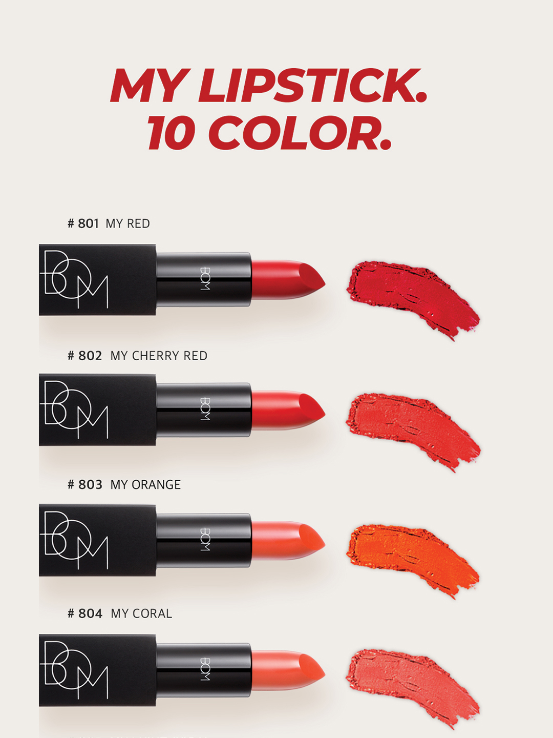 BOM MY LIPSTICK #802 MY CHERRY RED is the perfect pick for a timeless, statement-making look. With its rich cherry red pigment, this lipstick glides on effortlessly, offering a semi-matte finish that stays comfortable all day. Its lightweight formula provides intense color payoff while keeping lips soft and nourished, making it ideal for both everyday wear and special occasions.