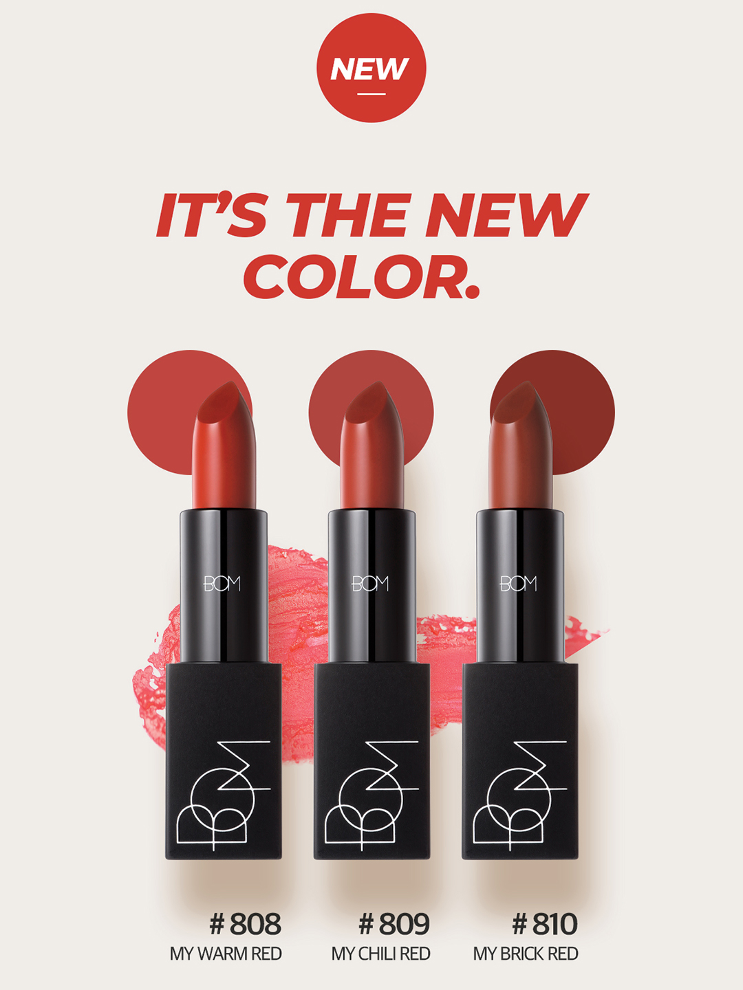 BOM MY LIPSTICK #810 MY BRICK RED is the perfect blend of sophistication and confidence. Its rich brick-red shade adds depth and warmth, making it ideal for both everyday wear and special occasions. The creamy, lightweight formula glides on effortlessly, delivering intense pigment with long-lasting comfort. With its semi-matte finish, this lipstick keeps lips looking smooth, refined, and elegantly bold all day long.