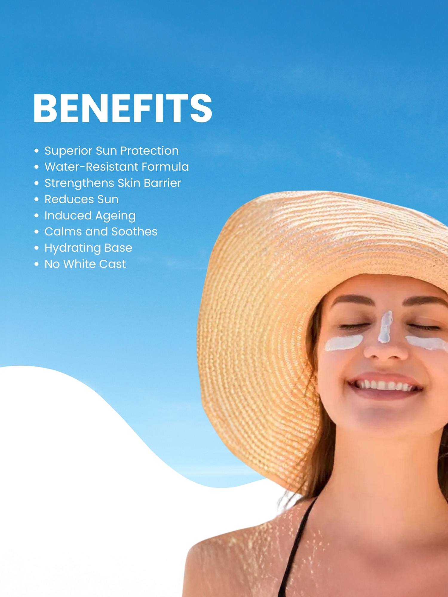 Introducing Dew Shield, a powerful daily sunscreen formulated with 62% Ginseng Water and 2% Niacinamide to nourish, protect, and strengthen your skin barrier. With SPF 50 PA++++ broad-spectrum protection, it defends your skin against harmful UV rays, environmental stress, sun damage, and premature signs of ageing. Its lightweight, water-resistant texture absorbs quickly, leaving no greasy feel or white cast, making it ideal for everyday wear. Designed for all skin types, Dew Shield keeps your skin hydrated, protected, and naturally radiant throughout the day.
