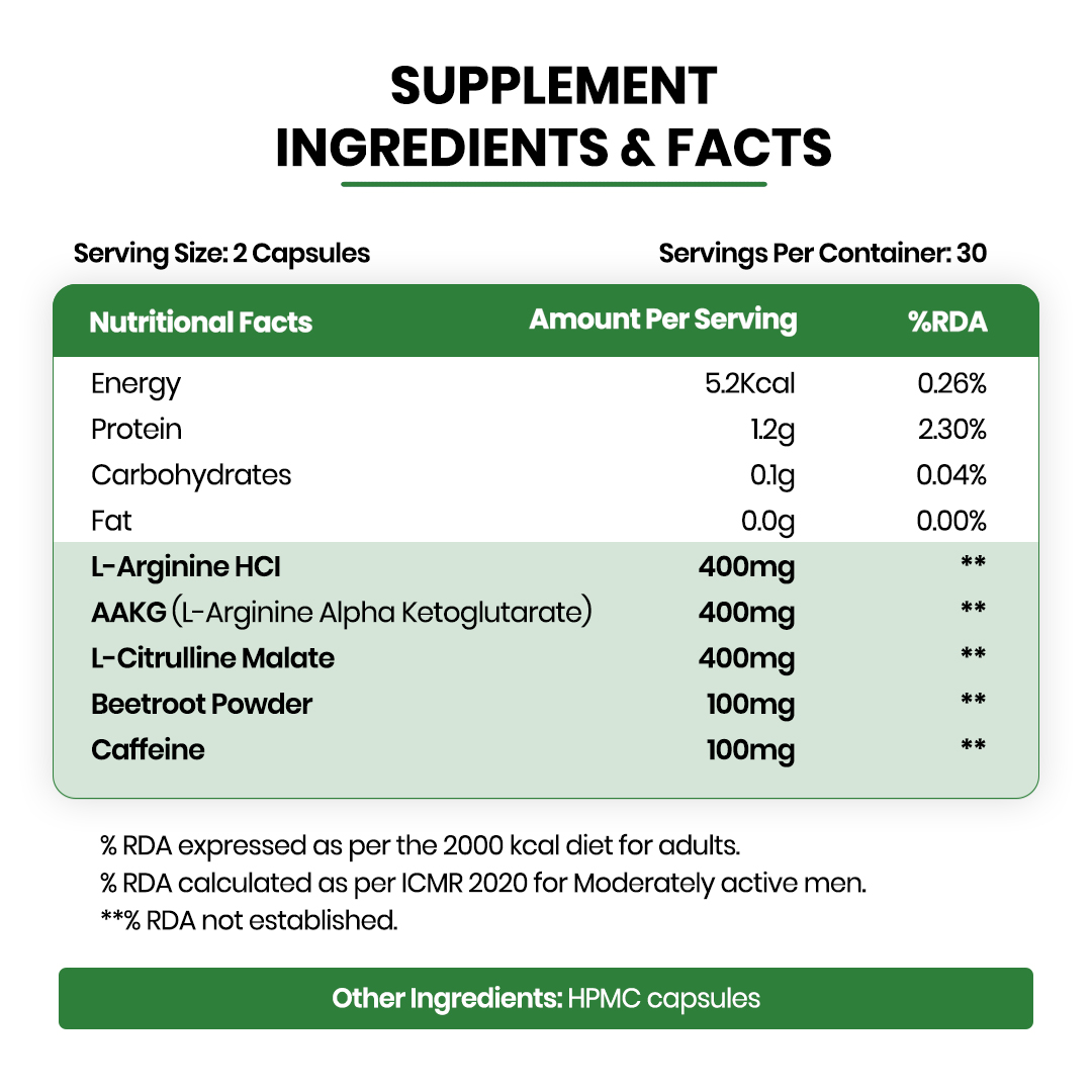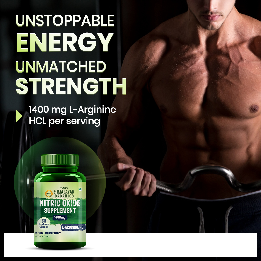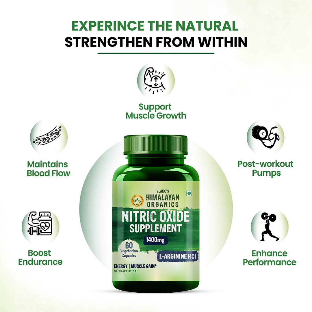 Did you know Nitric Oxide is one of the most important molecules for your blood vessel health? Did you know Nitric Oxide directly or indirectly affects your sports performance and post-workout recovery? Did you know that it is essential to maintain a balance of Nitric Oxide in the body for healthy blood flow and oxygen transportation? Well, now you know! Himalayan Organics Nitric Oxide Supplement is a perfect balance of amino acids and plant-based ingredients that enhance the balance of nitric oxide in your body for better performance. An amalgamation of L-arginine, L-citrulline, and beetroot powder, this supplement supplies energy, stamina, endurance, and vitality packed in 1400mg capsules daily. Apart from improved sports performance and post-workout recovery, Nitric Oxide regulates blood pressure levels and balances blood sugar levels for a healthy and active body. Fitness freaks, athletes, bodybuilders, men and women, augment your performance with Himalayan Organics Nitric Oxide Supplement!