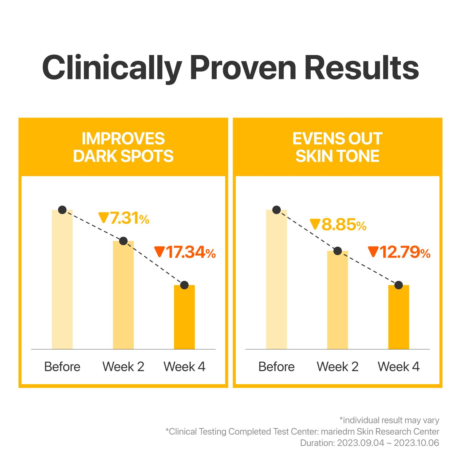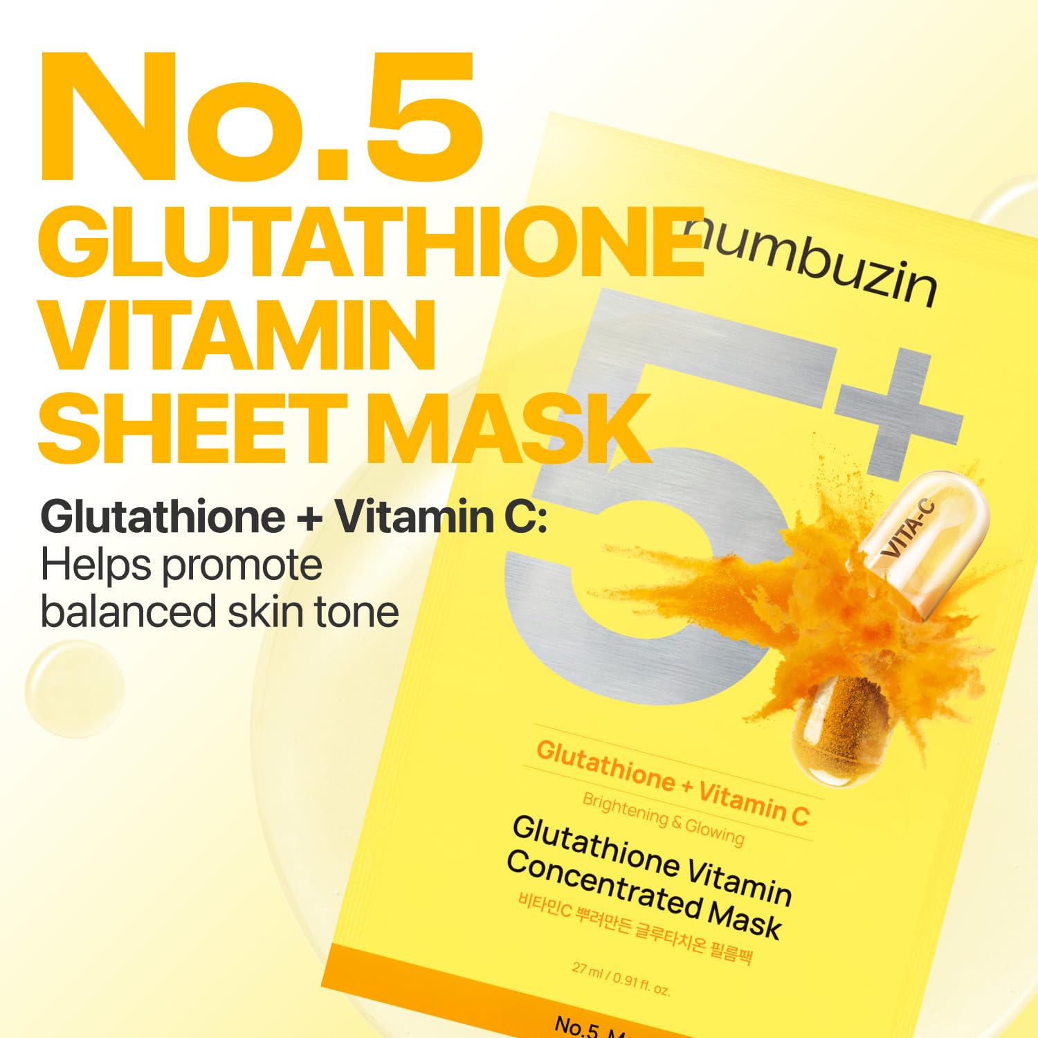 Formulated with Vitamin C, 98% Pure Glutathione and Niacinamide, The No.5 Vitamin Spotlight Sheet Mask gives the skin a hydrating glow for brighter skin. It evens out your skin tone, fades hyperpigmentation & dark spots and brightens pigmentation caused by sun exposure. It also contains Allantoin and Hyaluronic Acid that improve moisture retention and Asiatic Pennywort Extract that soothes irritation.