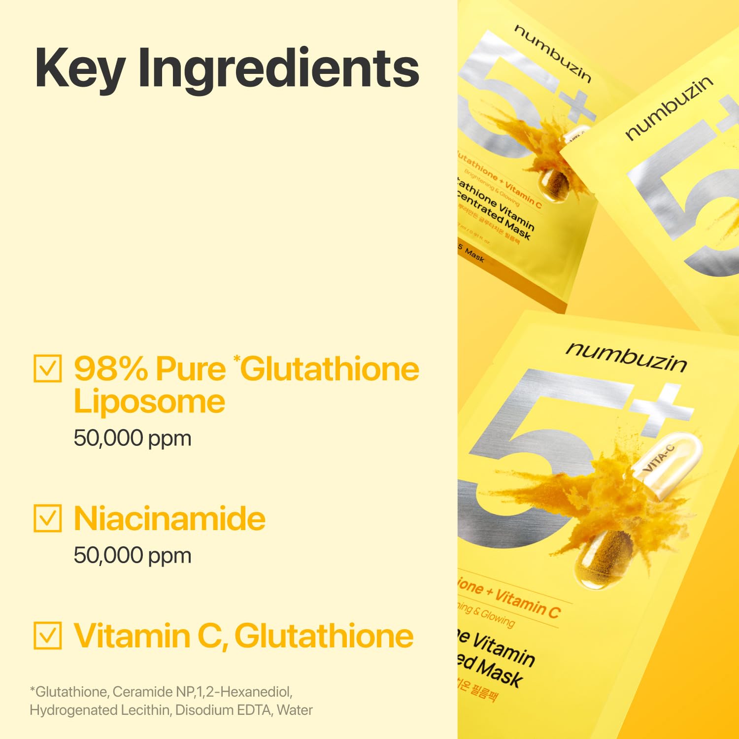 Brightening sheet mask with highly concentrated Glutathione and Vitamin C-5% Niacinamide reduces hyperpigmentation and discolouration for a brighter, even skin tone