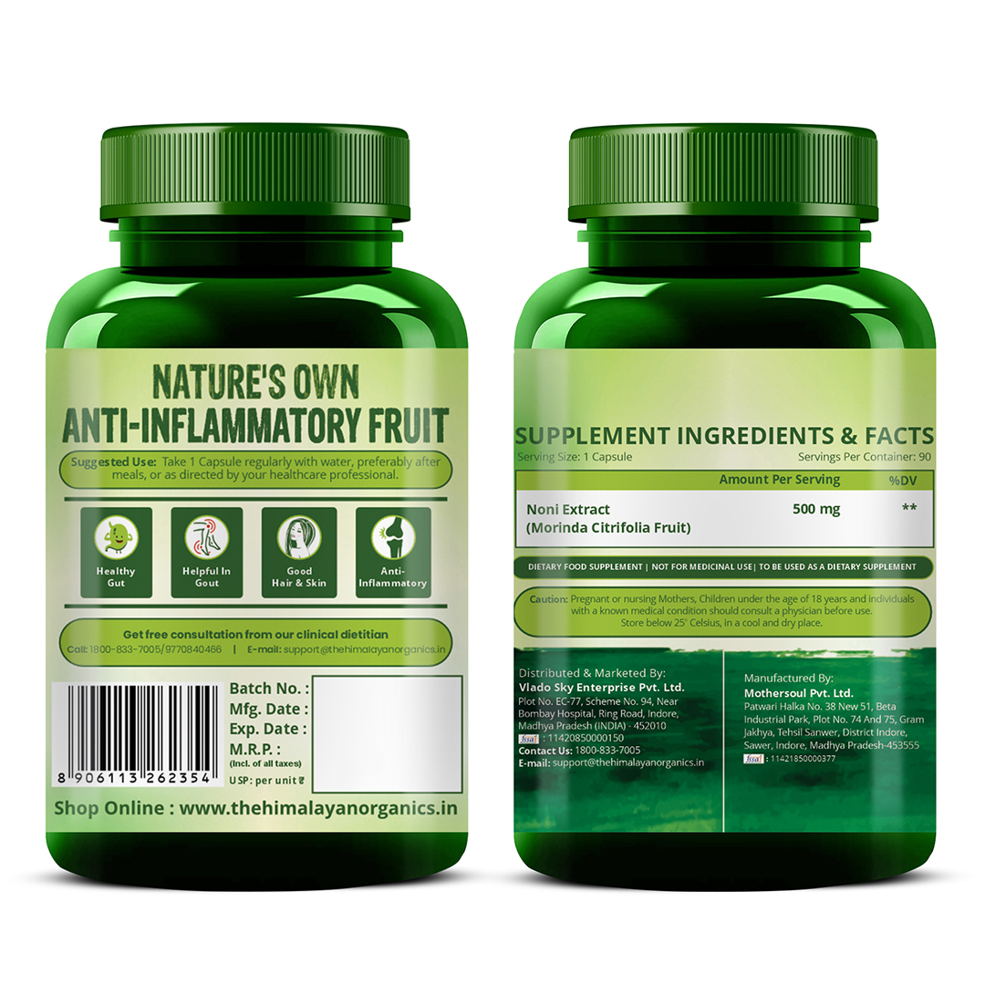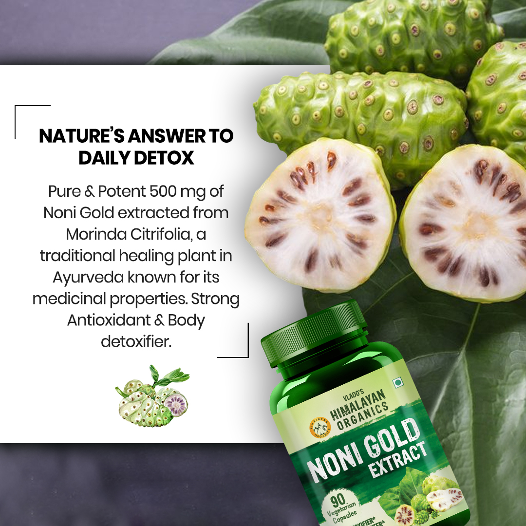 Noni is a wonder fruit with a pool of benefits. Known for its antibacterial, antiviral, antifungal, anti-inflammatory, and immune-enhancing effects, Himalayan Organics Noni Gold Extract Capsules support your overall health and well-being in the most natural way. It cleanses the gut & is extremely helpful in gas, constipation & a number of other digestive problems. As a naturally formulated blend, it only purifies the blood and detoxifies the body but also provides relief from joint pains while enhancing mood. Noni promotes your complete well-being when used in the right & consistent manner.