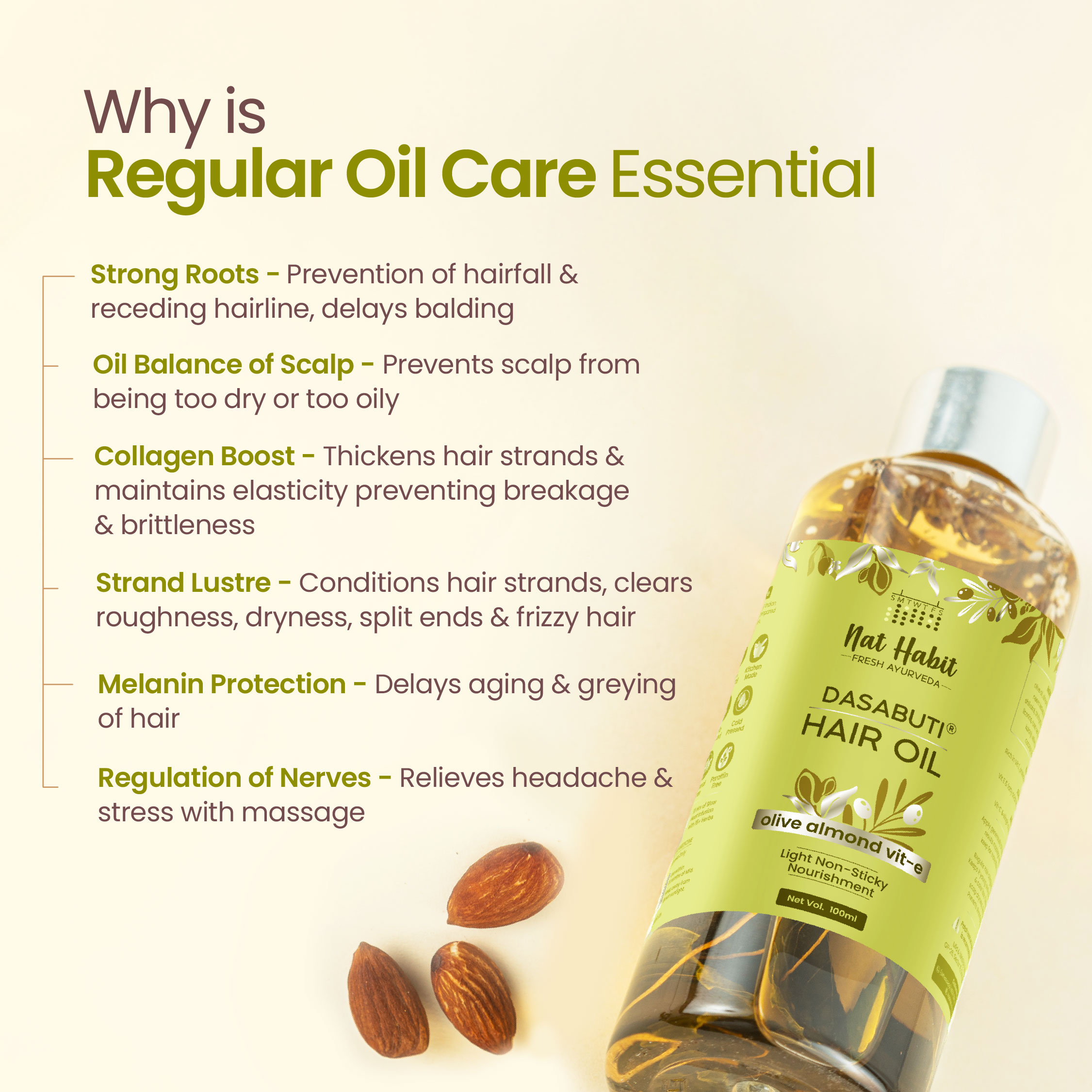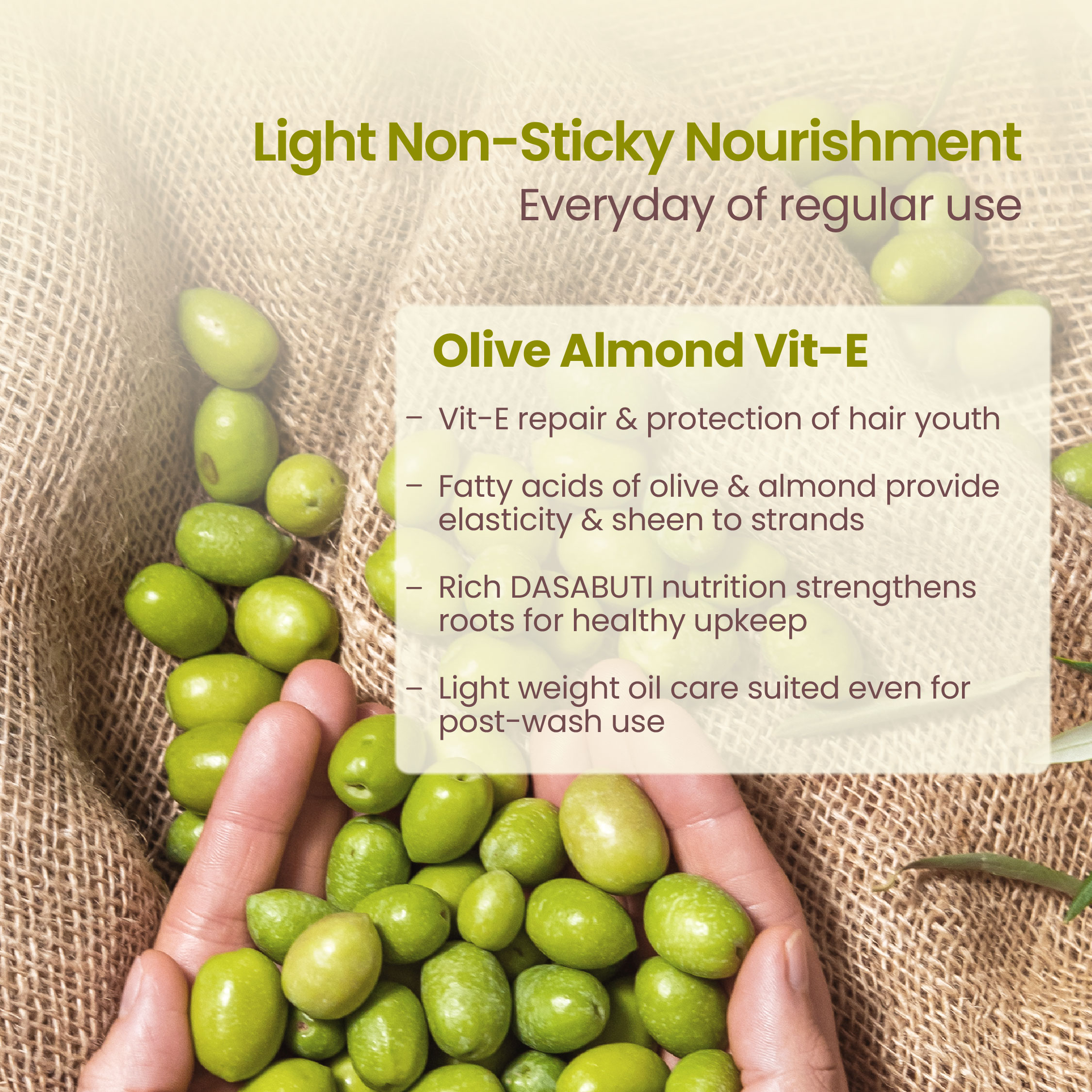 Light, Non-Sticky Nourishment For Both Oily & Dry Scalp: Made With Light & Vitamin E Rich Oils, Heat Infused With Ayurvedic Herbs Targeted For Non-Sticky Care, Shine & Hair Growth, Ideal For All Scalp And Hair Types. Does Not Leave Hair Greasy Or Weighed Down.Vitamin E Rich Hair Nutrition Derived From Olives & Almonds: Vitamin E Helps Keep Hair Healthy, Enables Growth, Prevents Aging Of Hair And Hence Inhibits Hairfall & Greying.