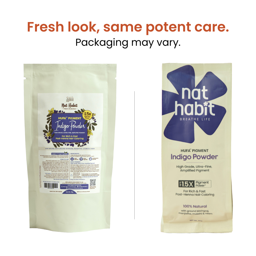 Ayurvedic Processing : Rooted in traditional Ayurvedic wisdom, the indigo is meticulously processed through time-honored methods including repeated grinding, natural sun-drying, and fine sifting. This preserves the plants purity, potency, and effectiveness, ensuring a clean, smooth texture and enhanced benefits.