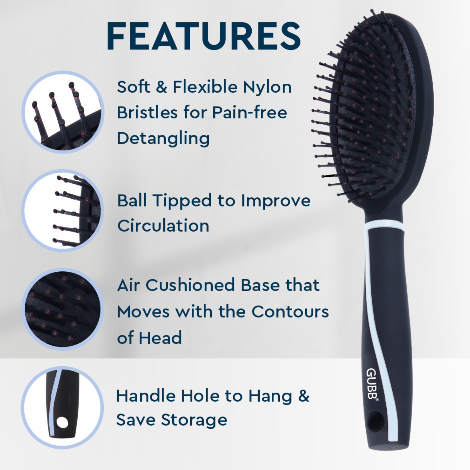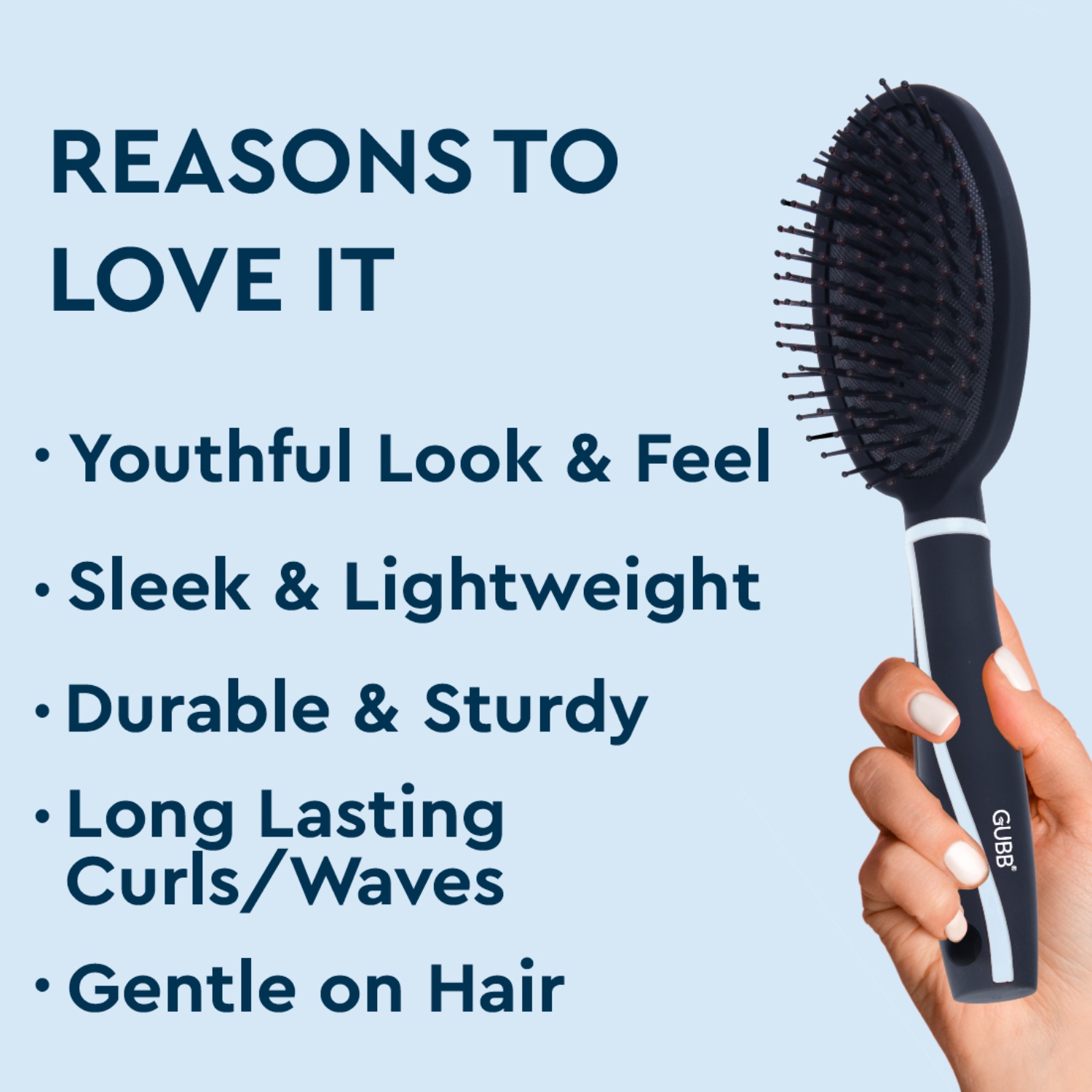 GUBB Oval Hair Brush is the definition of pain free detangling, with flexible bristles that gently style your hair. This sturdy yet flexible brush makes it easier to detangle knotted hair strands.