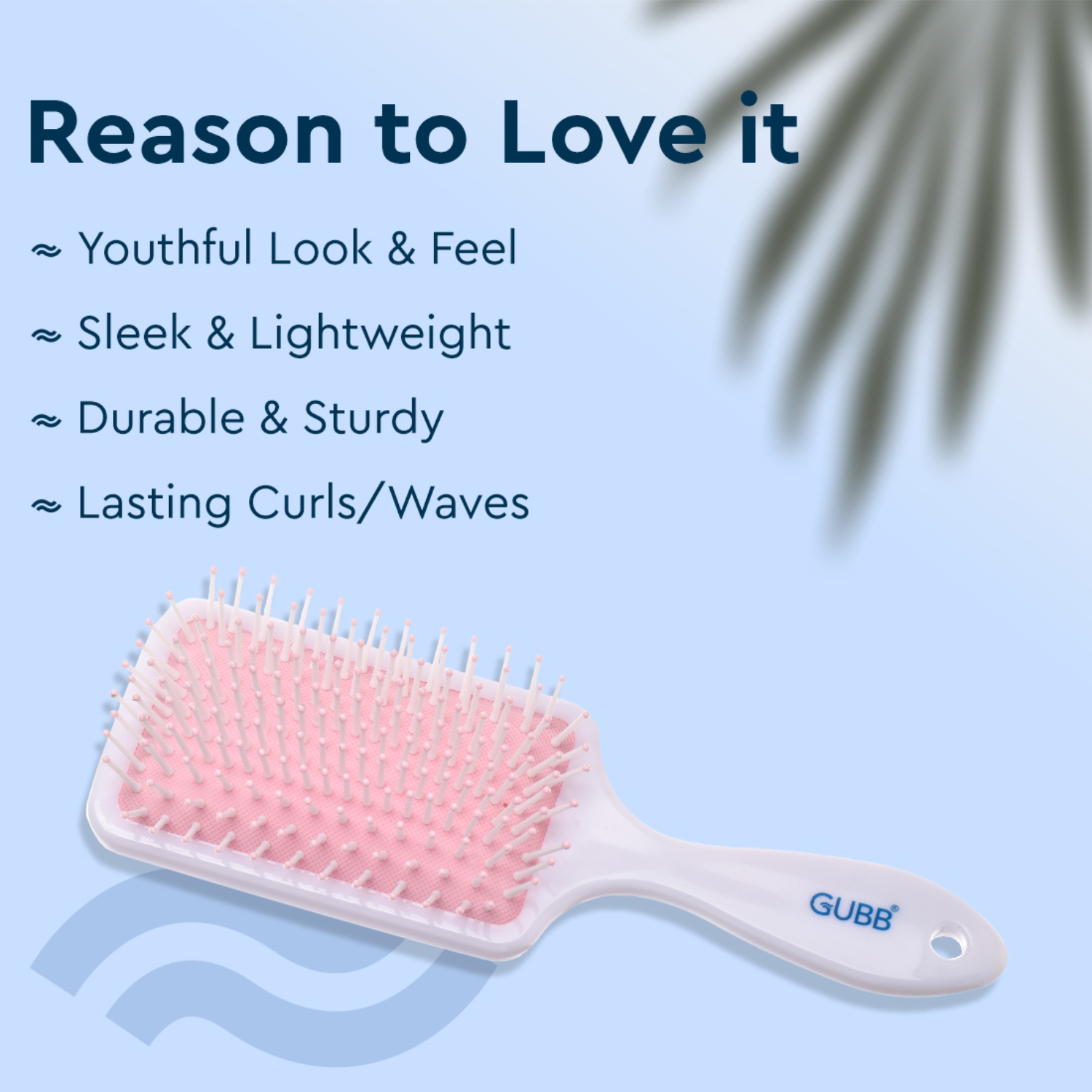GUBB Oval Hair Brush is the definition of pain free detangling, with flexible bristles that gently style your hair. This sturdy yet flexible brush makes it easier to detangle knotted hair strands.