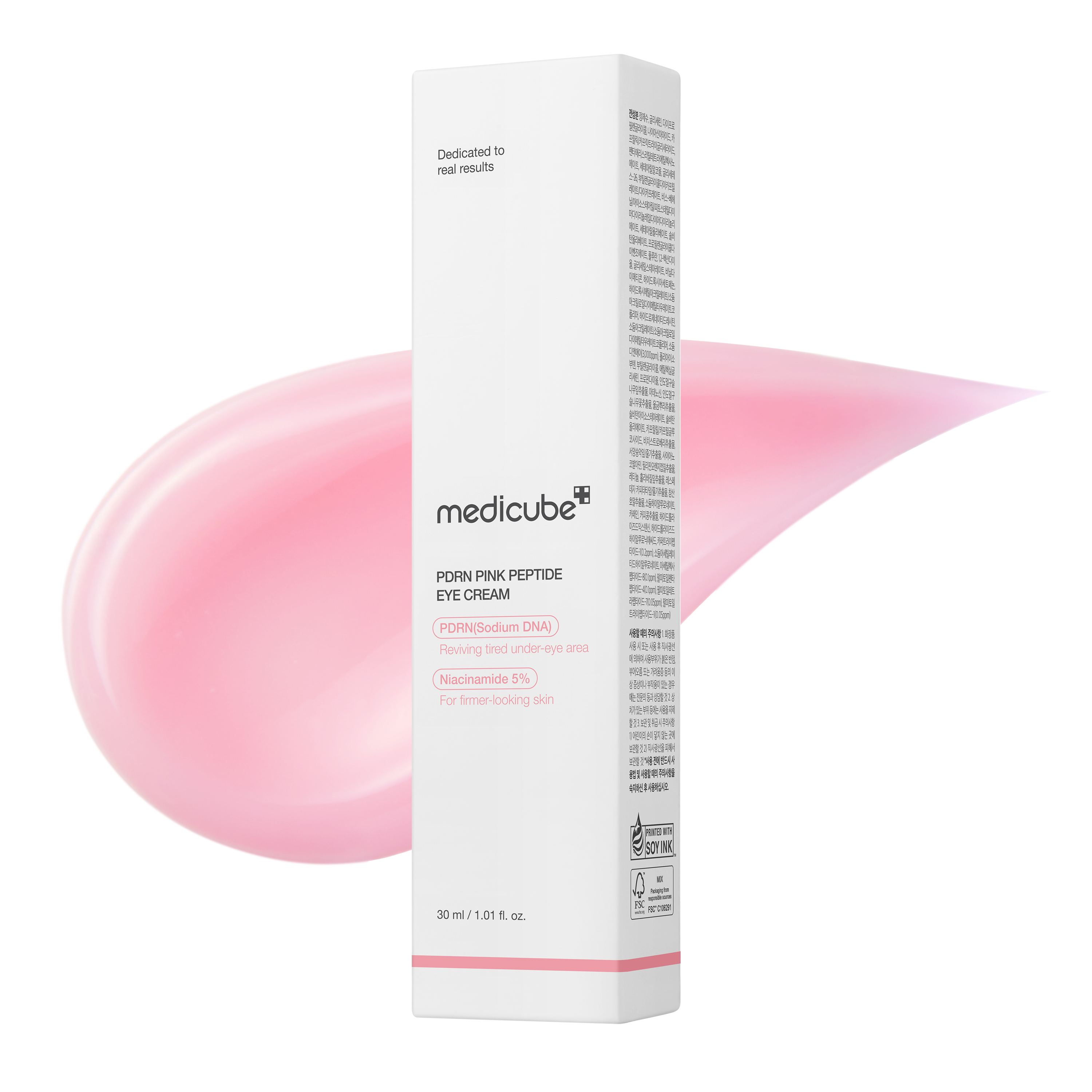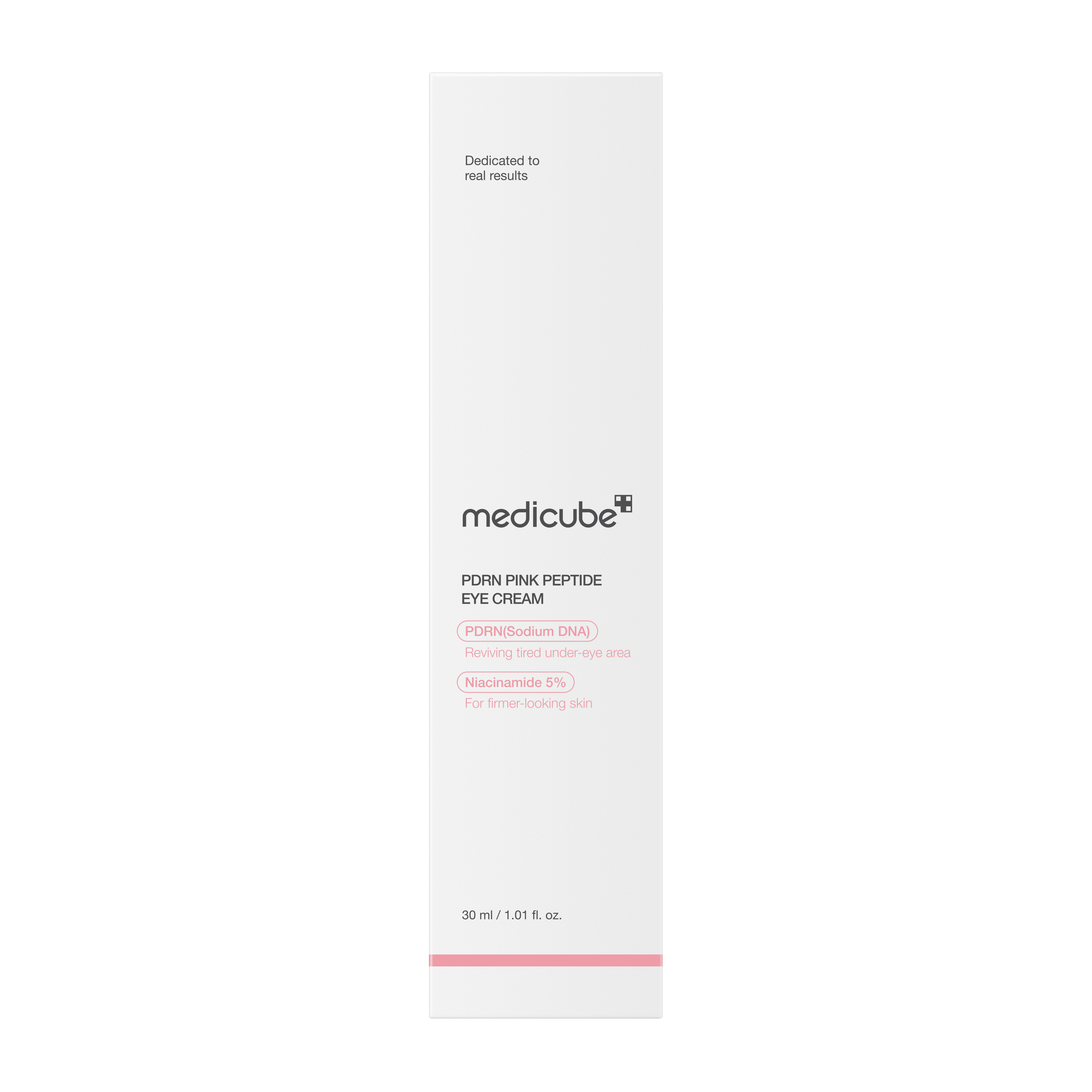 Discover youthful, refreshed eyes with the medicube PDRN Pink Peptide Eye Cream (30ml). Formulated with 99% pure retinol to improve fine lines and boost elasticity, this advanced eye care treatment helps smooth and firm the delicate eye area for a healthier, youthful appearance. Highly concentrated salmon DNA PDRN and peptides in the medicube eye cream work to reduce dark circles, even skin tone, and improve texture, while niacinamide provides hydration and nourishment. The silky, lightweight, non-sticky texture of this undereye cream allows rapid absorption, delivering effective care without heaviness.