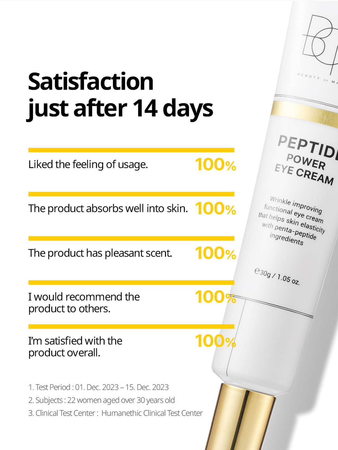 PEPTIDE POWER EYE CREAM is specially formulated to target the delicate skin around the eyes. Enriched with peptides, it helps improve skin elasticity, reduce puffiness, and minimize the appearance of fine lines and wrinkles. Its lightweight, fast-absorbing texture provides long-lasting hydration while supporting the skins natural barrier. Ideal for daily use, this eye cream leaves the under-eye area smooth, firm, and revitalized, promoting a brighter and more youthful-looking appearance.