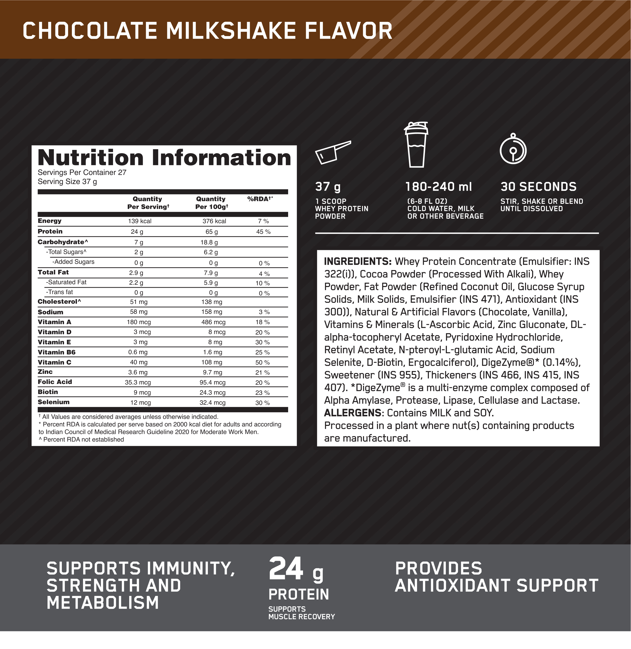 Add 1 scoop to 180-340 ml of cold water.Use in recipes, or blend to make smoothies.