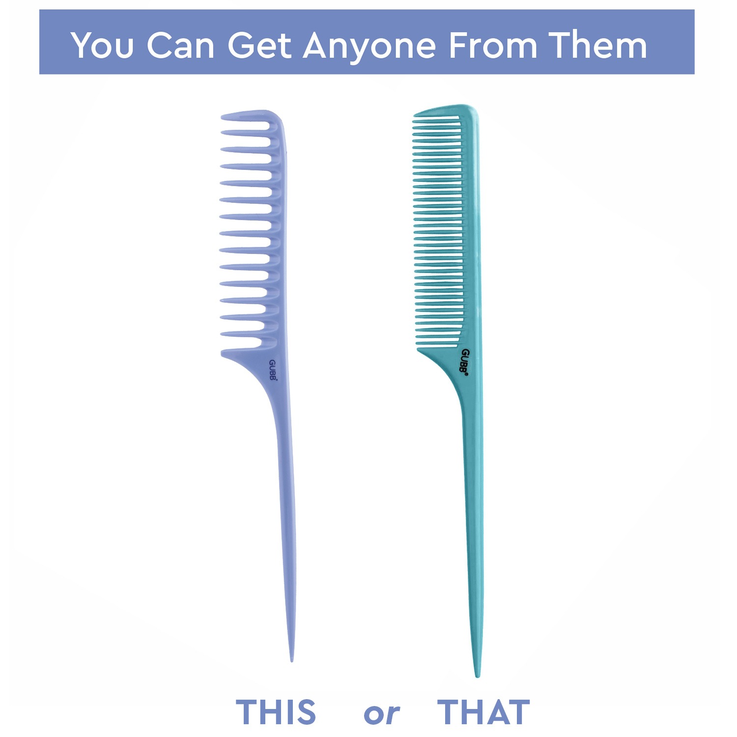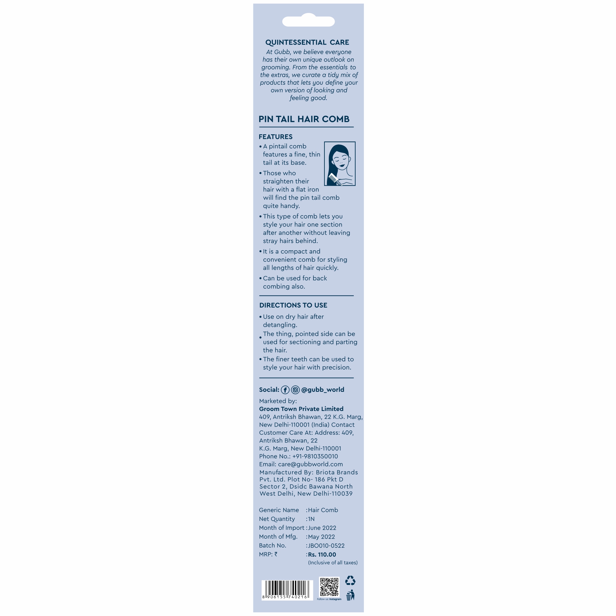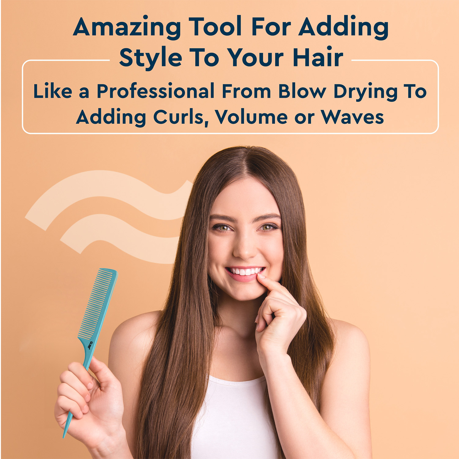 A pintail comb features a fine, thin tail at its base. Those who straighten their hair with a flat iron will find the pin tail comb quite handy. This type of comb lets you style your hair one section after another without leaving stray hairs behind. It is a compact and convenient comb for styling all lengths of hair quickly. Can be used for back combing also.