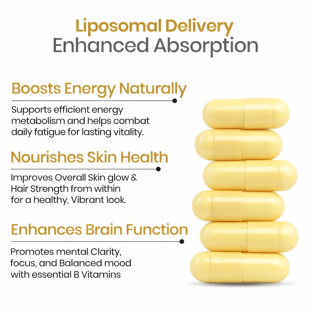 Liposomal Vitamin B1 (Thiamine), Liposomal Vitamin B2 (Riboflavin), Liposomal Vitamin B3 (Niacin / Niacinamide), Liposomal Vitamin B5 (Pantothenic Acid), Liposomal Vitamin B6 (Pyridoxine), Liposomal Vitamin B7 (Biotin), Liposomal Vitamin B9 (Folate / Folic Acid), Liposomal Vitamin B12 (Cobalamin)