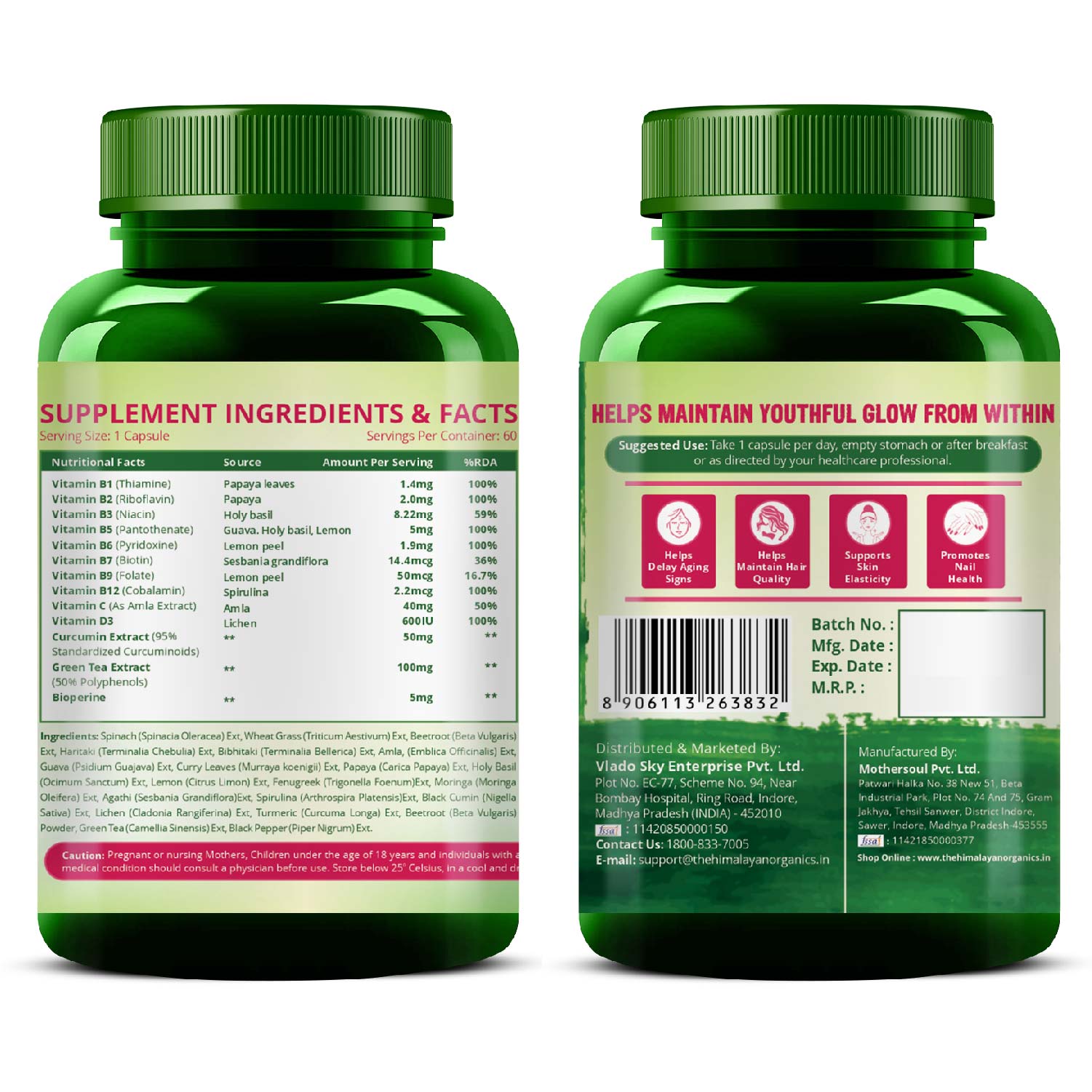 Boost collagen synthesis with Himalayan Organics Plant-based Collagen capsules, an all healthy and natural formula. Your body needs to ensure a healthy balance of collagen as it is the structural protein found in the countless connective tissues in your body. In fact, it is the building block of your body. Made with the goodness of various ingredients like Sea buckthorn, Green Amla, Sesbania Grandiflora, Acai Berry, Spirulina, Green tea, Guava, Pomegranate, and more, these capsules assist in ensuring a healthy structure, promotes glowing skin, strengthens bones, and promotes muscle health. Level up with 15X power!