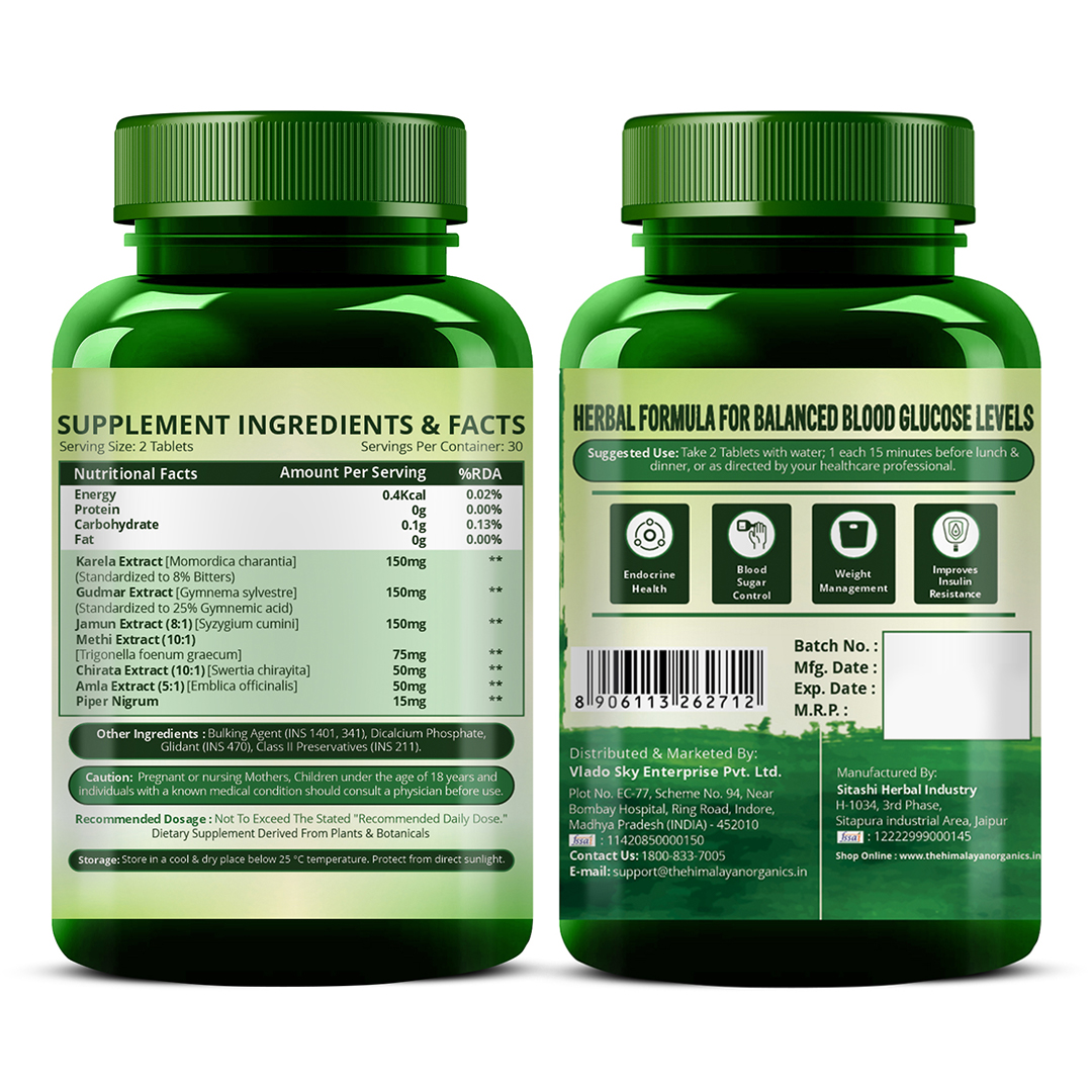We all know the importance of balanced blood sugar levels. Having high or low blood sugar levels may lead to disturbances in health which you may not enjoy. Himalayan Organics Gluco Balance is that one superior herbal formula essentially developed after intensive research to stabilize blood sugar levels the healthy way. This supplement is enriched with glucose balancing plant-based extracts in perfect ratios and balances to give you the maximum comfort. A combo of karela extract (standardized for optimal taste), gudmar extract, jamun extract, methi extract, chirayta extract, amla extract, and piper nigrum to support endocrine health, regulate blood glucose levels, balance weight & enhance insulin resistance most nobly. Ensure your good health daily with a cruelty-free, vegan, expert-approved & lab-tested formula.