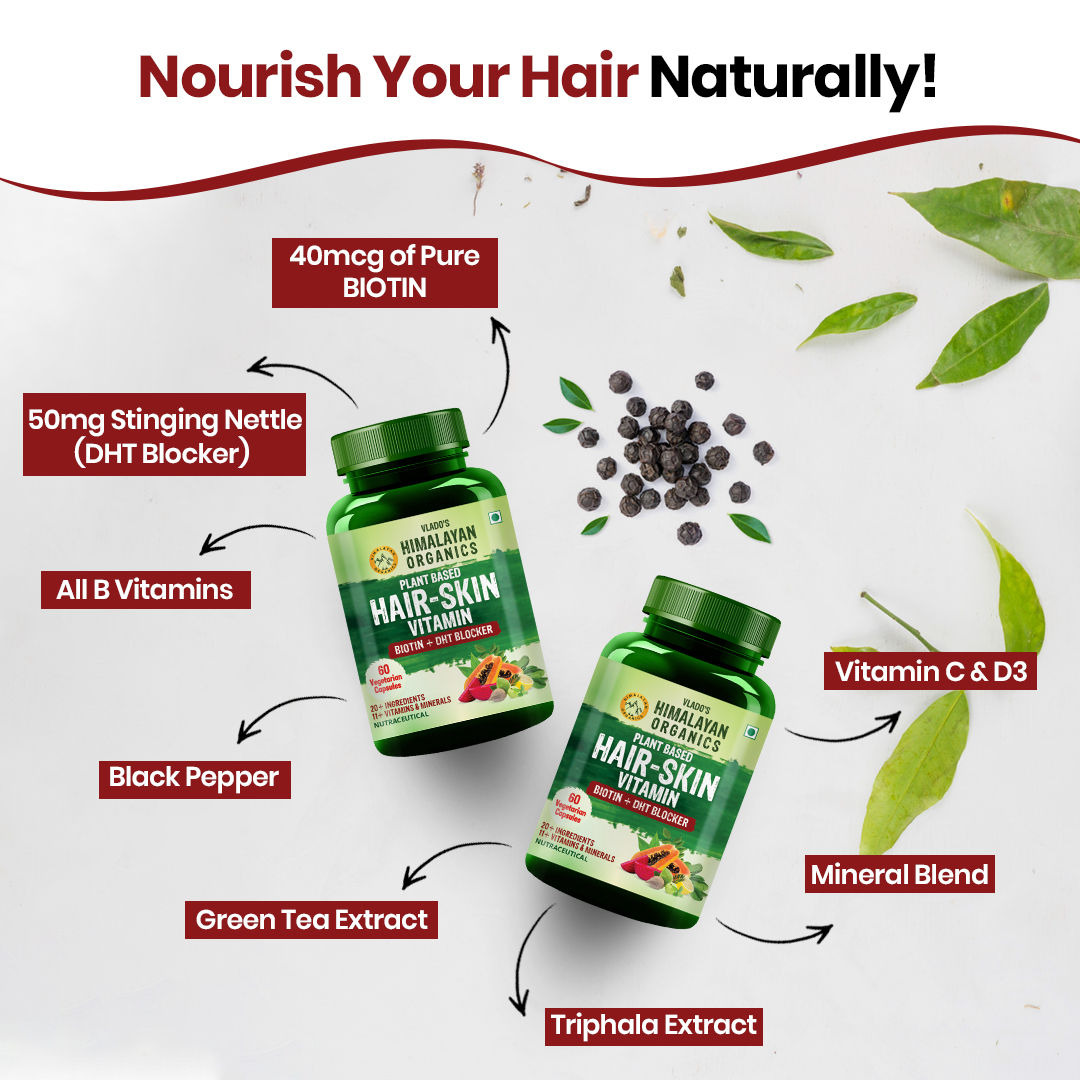 These hair vitamin supplements manage follicle shrinking and deal with hair fall with the help of stinging nettle, pumpkin seed, etc. With our unique blend of essential vitamins and antioxidants, our product will help address various deficiencies that have been known to lead to hair loss in men and women of all ages.