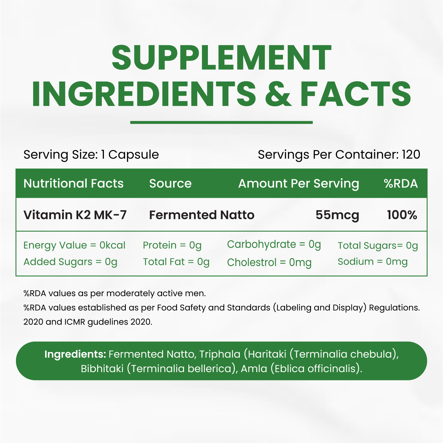Ever thought about what excess or unabsorbed calcium could do to your body? Calcium if not properly assimilated into your bones can get deposited in your arteries, making them stiff and blocked. How to stop that? The solution is here, Himalayan Organics Plant-Based Vitamin K2. Extracted from spirulina, Vitamin K2 helps keep away calcium from arteries and minimizes excess accumulation in bones. More than that, the vitamin also helps in keeping your heart healthy and maintaining overall wellness. To serve you nothing else than pure health, the capsules are free from harsh chemicals, gluten, soy, dairy, egg, shellfish, fish, and nuts. This is a vegan-friendly supplement.