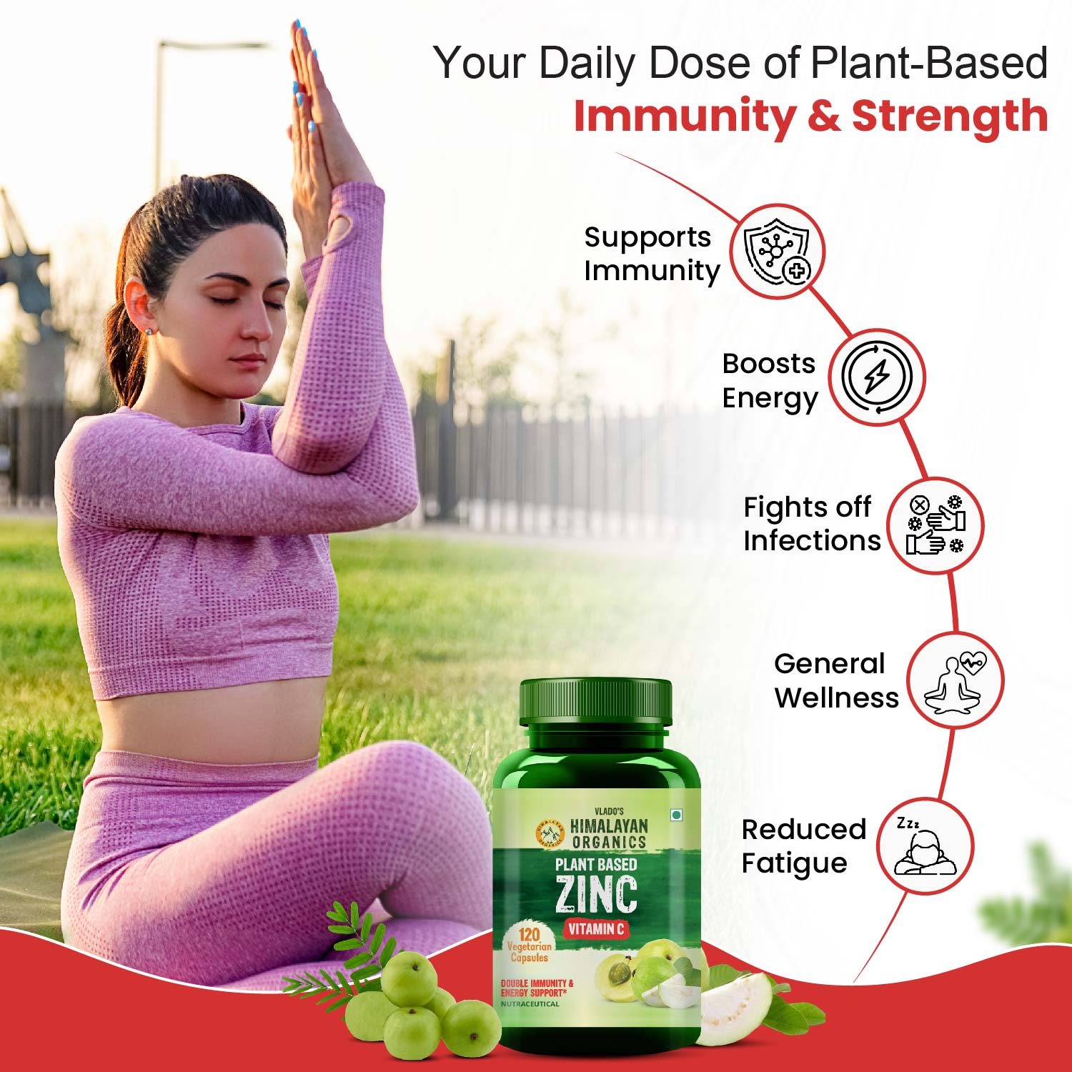 2X Power All Day Long! Zinc and Vitamin C are the key nutrients essential for various reactions in your body. This vitamin and mineral combo supports nearly all the cells in your body for its smooth functioning. Precisely, that’s why Himalayan Organics brings to you Plant-based Zinc Capsules enriched with the perfect balance of Vitamin C for your daily immunity, energy, and vitality. A power pack of 120 vegetarian capsules is a conscious amalgamation of various plant-based extracts rich in Vitamin C and Zinc, including Asparagus, Okra, Spinach, Beetroot, Wheatgrass, Spirulina, Pumpkin, and Amla. Whether you are a man or a woman, whether you work from home or office, whatever the case is, all you need is a stronger immunity, high energy, healthy functioning, and active life to lead your day smartly and efficiently. Himalayan Organics Plant-based Zinc with Vitamin C Capsules are a perfect friend for all your needs. Get ready for 2X Power All Day Long!