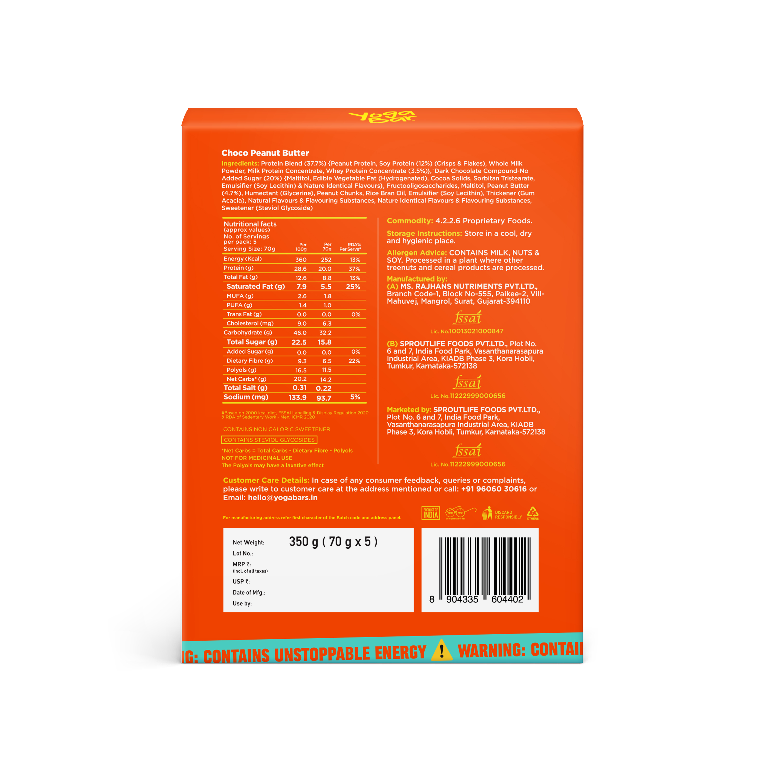 Yogabar Power up Choco Peanut Butter Pack of 10 Bars | High in Protein | Health Snack