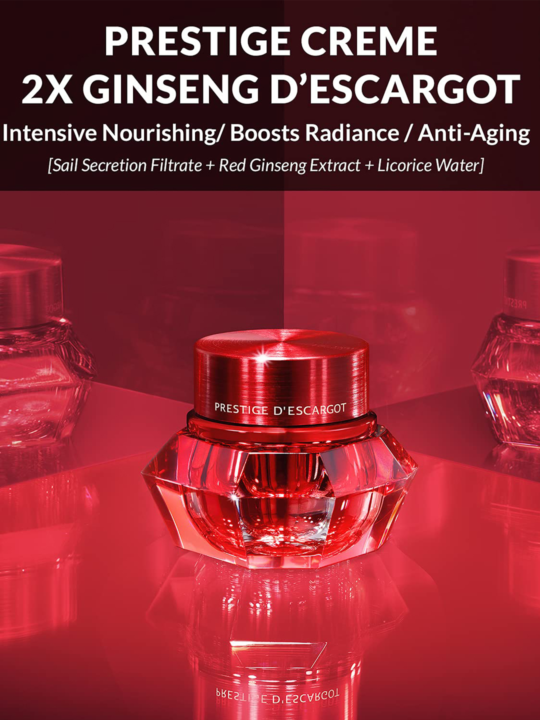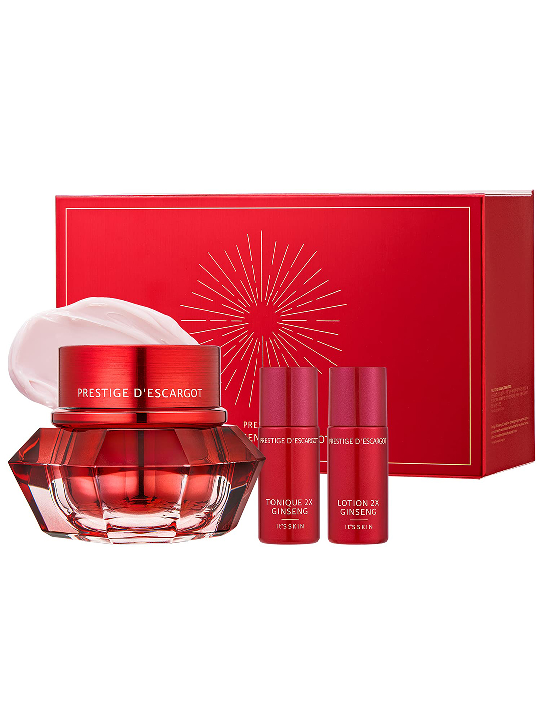 Introducing the It's Skin Prestige Crème 2X Ginseng D'escargot Set, a luxurious skincare duo that redefines beauty. Enriched with the power of Ginseng and Snail Mucin, this set combines traditional herbal remedies with modern skincare innovation for a revitalizing experience. The Prestige Crème offers intense hydration, promoting a radiant and youthful complexion, while the 2X Ginseng D'escargot Serum enhances skin elasticity and reduces the appearance of fine lines. Pamper your skin with this harmonious blend, carefully crafted for indulgence. Elevate your skincare routine and embrace the prestige of timeless beauty with the It's Skin Prestige Crème 2X Ginseng D'escargot Set.