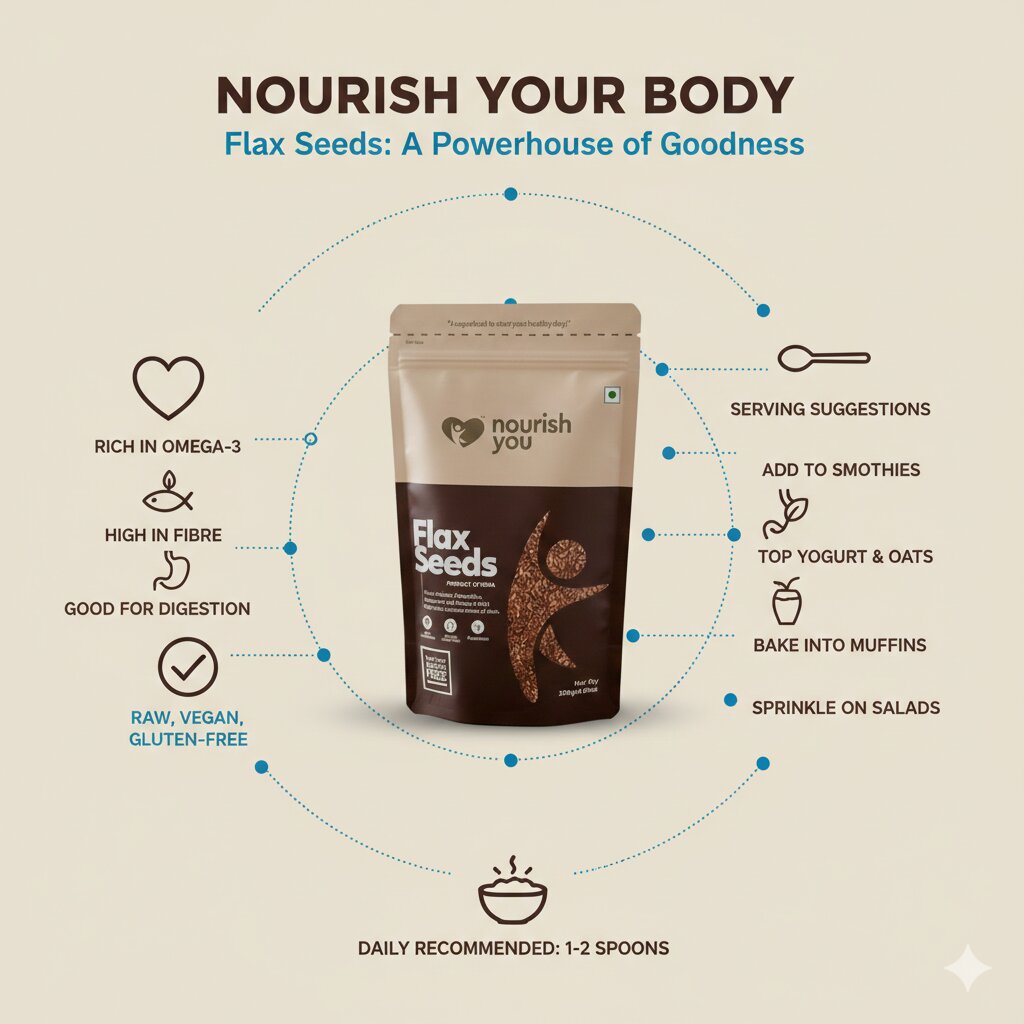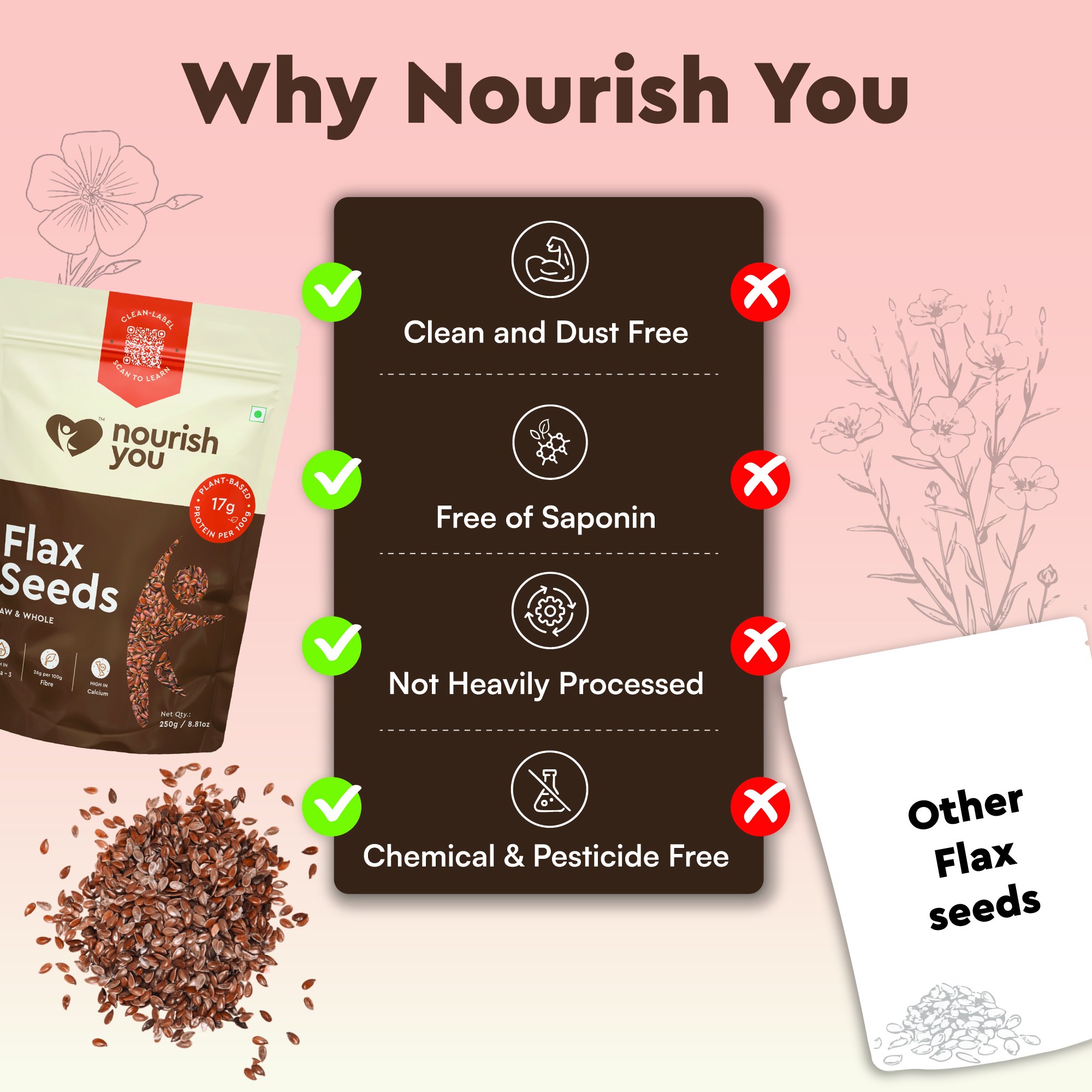 Enjoy the dual benefits of raw and roasted flax seeds in one convenient pack, ensuring variety and balance in your meals. Nourish You brings you this nutritious offering to make your wellness journey flavorful and sustainable.