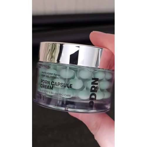 VT PDRN Capsule Cream 100 is a premium moisturizing treatment formulated with 100,000 ppm of plant-based PHYTO PDRN® derived from ginseng. This unique capsule cream helps firm and brighten the skin while delivering deep hydration and barrier support. The soft capsule-in-cream texture melts smoothly into the skin, absorbing comfortably without greasiness