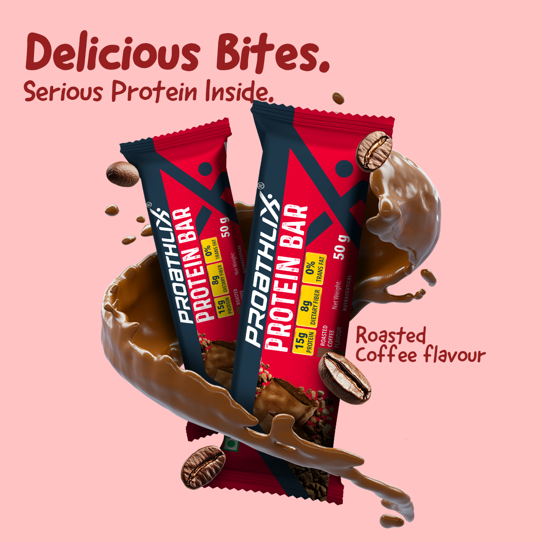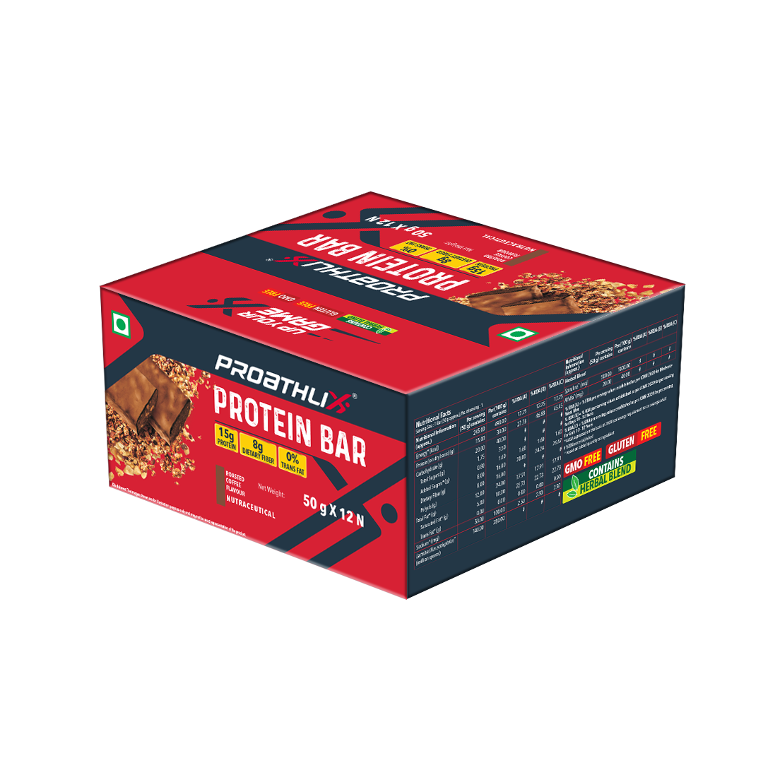 Proathlix offers a high-energy Protein Bar in three delicious flavors, each packed with 15g of protein per bar. Perfect for both men and women, these bars are designed to meet your daily nutrient needs, whether you're on the go, between meals, at the office, or anytime you need a healthy snack. Made in a top-tier, ISO 22000 & GMP-certified facility, these bars are loaded with essential vitamins like Vitamin C (Ascorbic Acid), Vitamin B12, and Calcium, along with other nutritious ingredients. Proathlix Protein Bars come in an affordable pack of 12, giving you a convenient, tasty way to fuel your day.