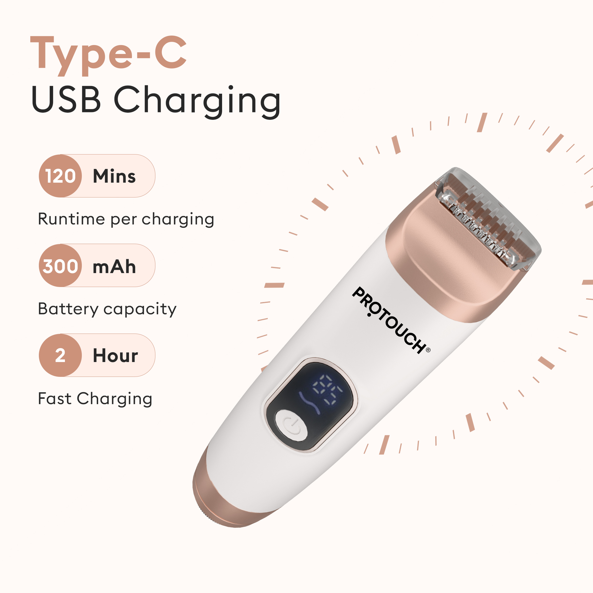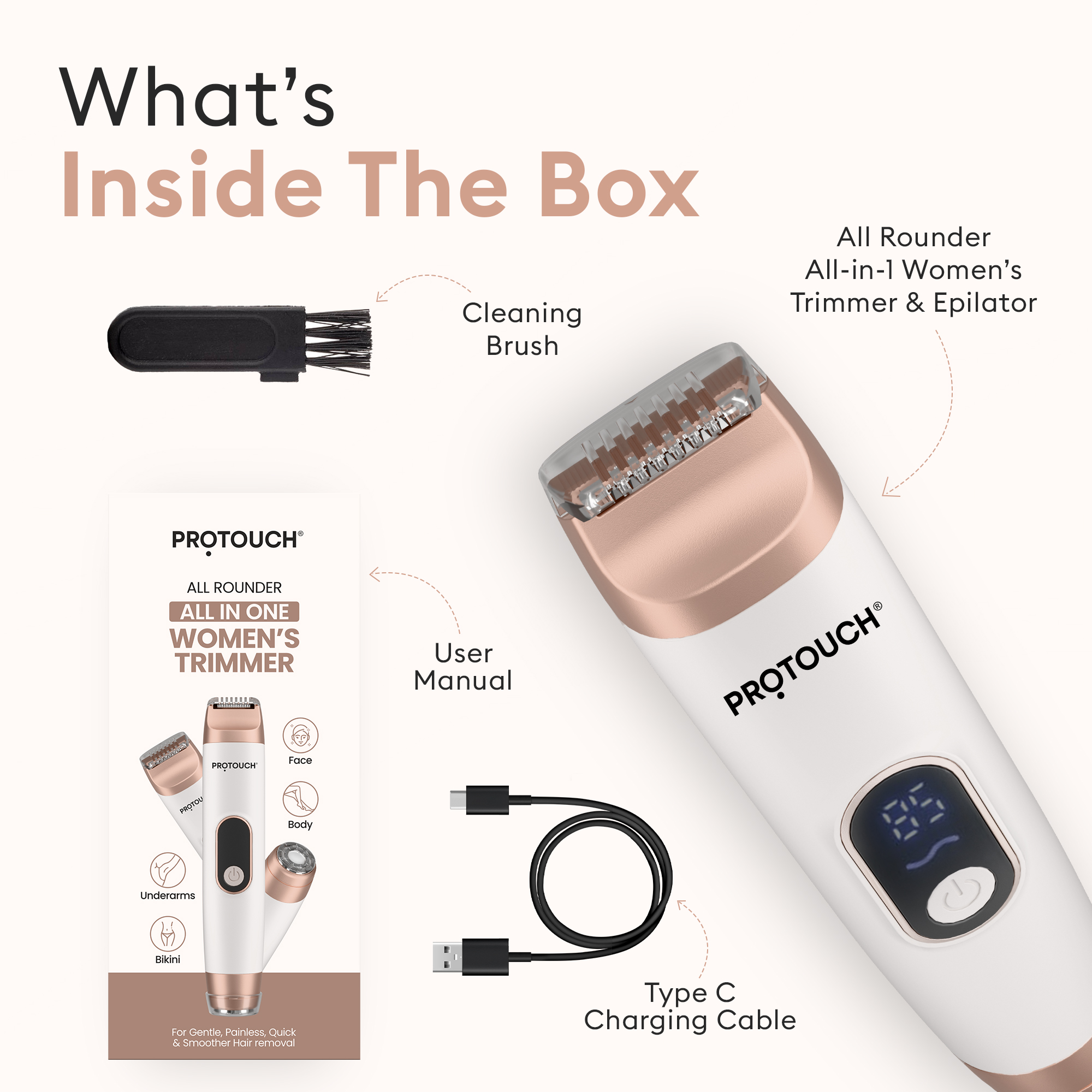 Say goodbye to painful waxing, harsh razors, and time-consuming salon visits! The PROTOUCH All-Rounder All-in-1 Womens Trimmer & Epilator gives you smooth, hair-free skin anytime, anywherewithout irritation or cuts.