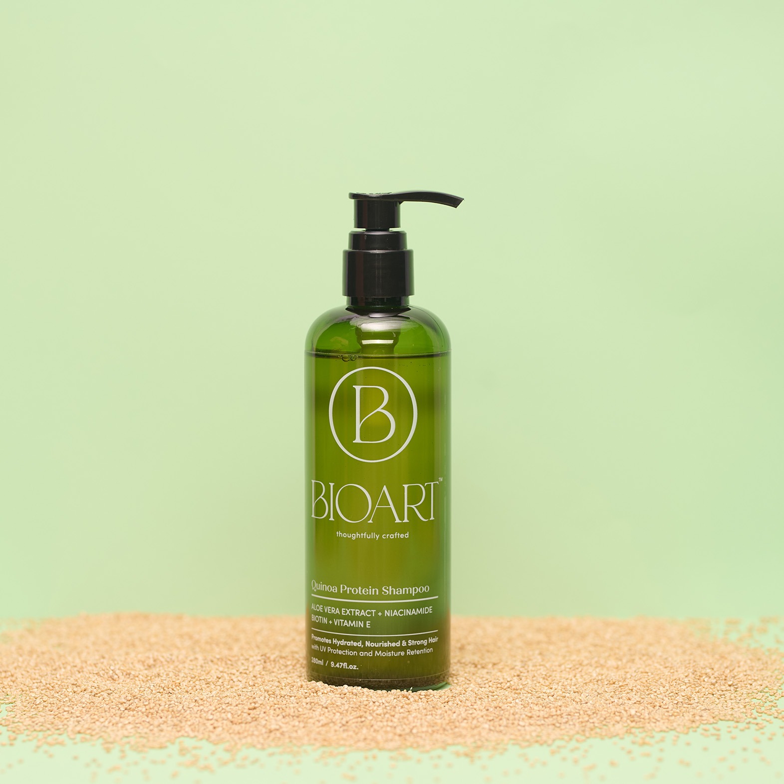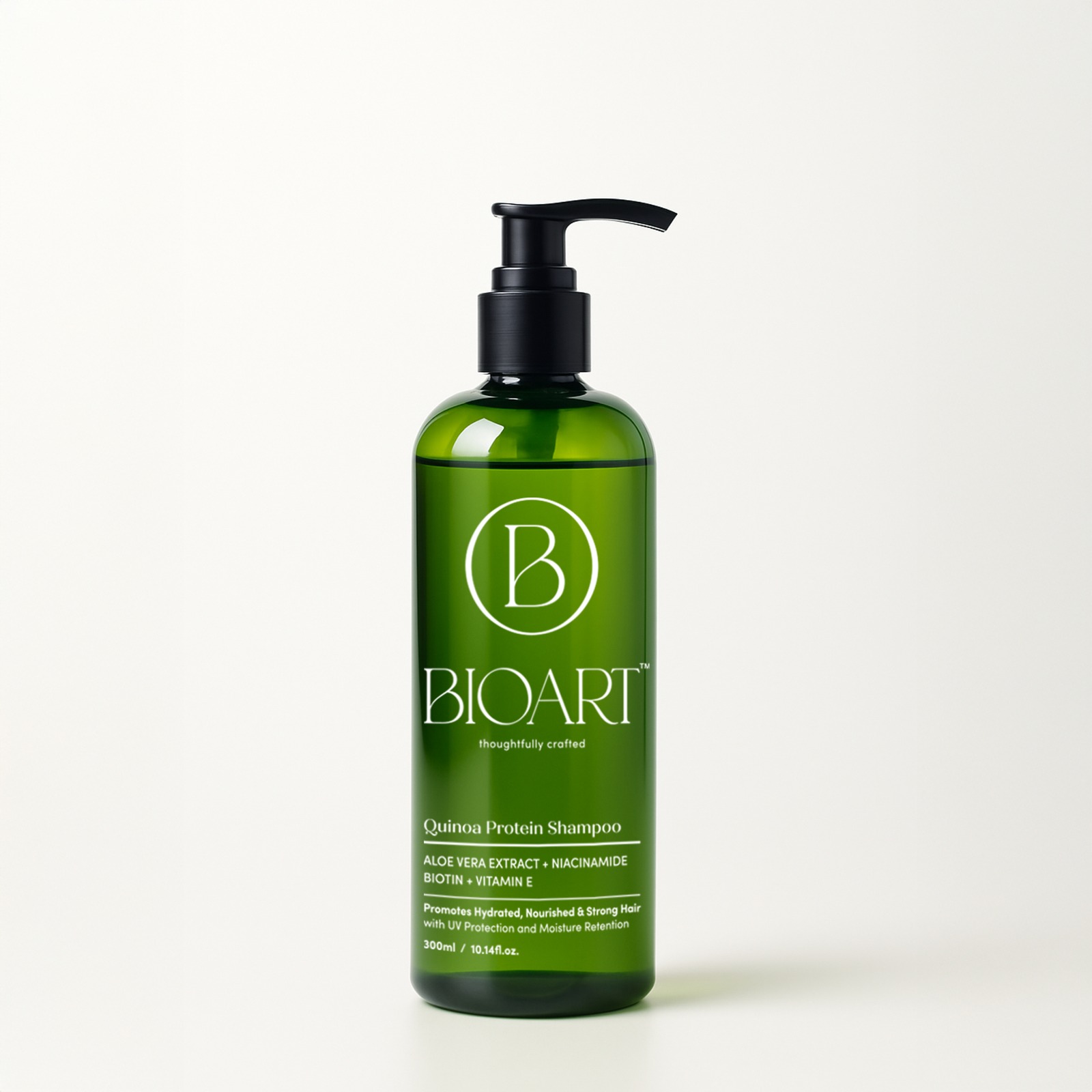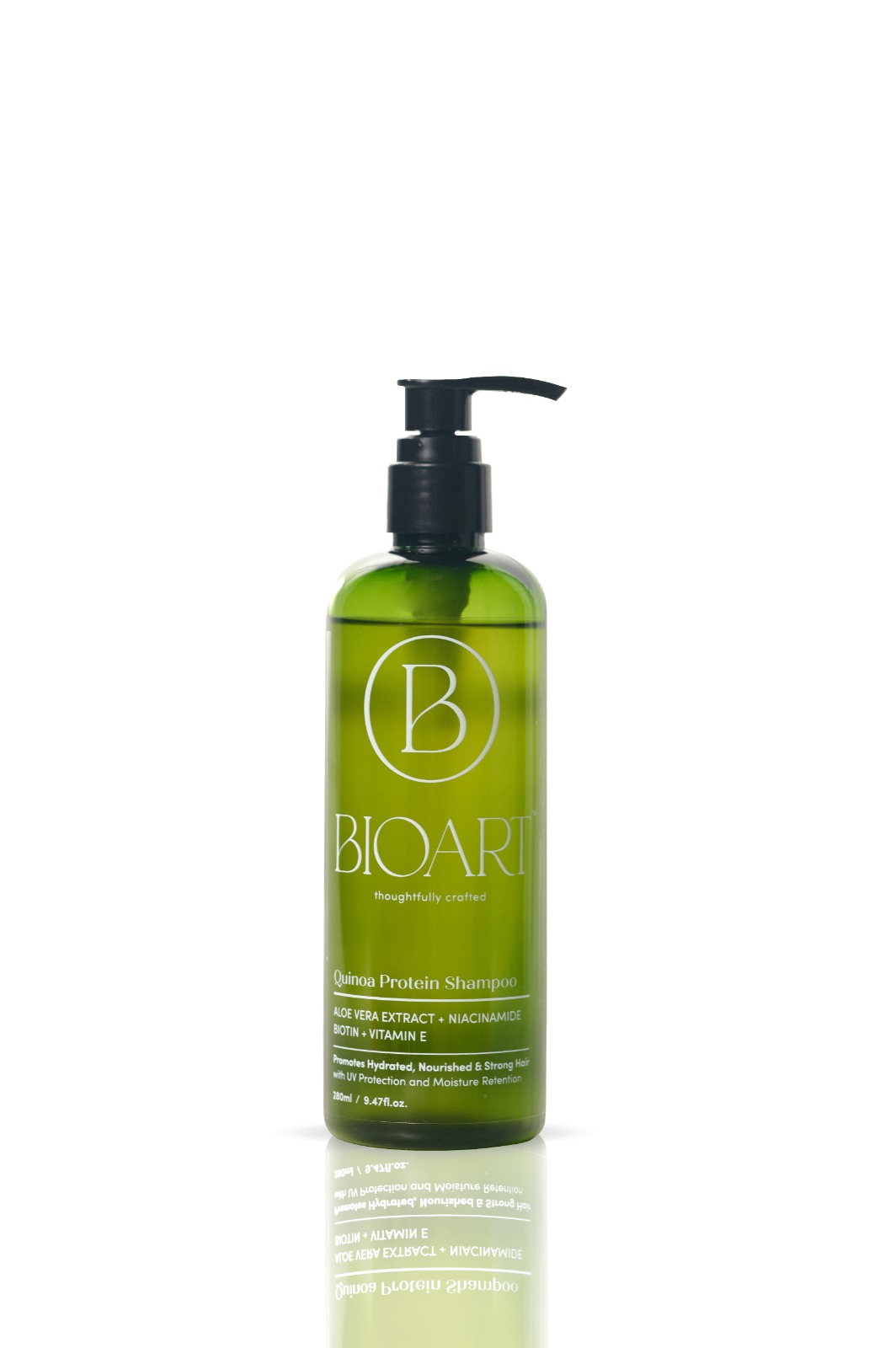BIOART Quinoa Protein Shampoo is a luxurious, sulfate-free formula enriched with Quinoa Protein, Aloe Vera, Biotin, and Niacinamide to strengthen, repair, and hydrate your hair. Gentle yet effective, it nourishes the scalp, restores shine, and protects against UV and color damage leaving your hair soft, smooth, and full of life.