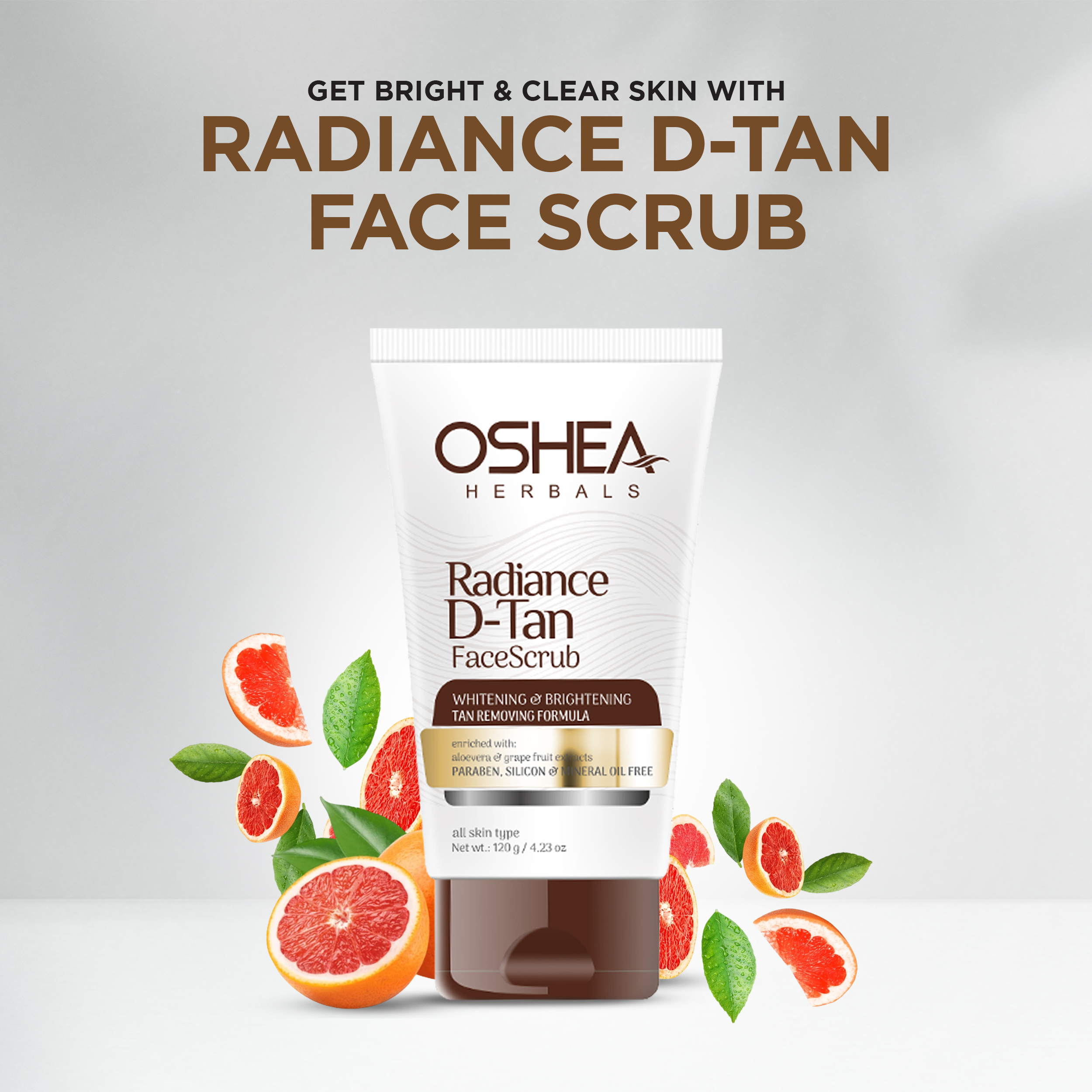 Oshea Herbals Radiance D-Tan Scrub brings you the power of the natural world. Its exclusive formulation contains scientifically extracted actives Arbutin, Licorice extract, and Grapefruit extract that help to reduce and remove the skin tan. This D-tan scrub gives instant brightening and removes the tan from the skin, making it look fairer and younger. This whitening and brightening tan removal formula is suitable to be used for every skin type. You should prefer to use this D-tan scrub twice a week so that it is soft on your skin. However, it can be used at any time of the day.