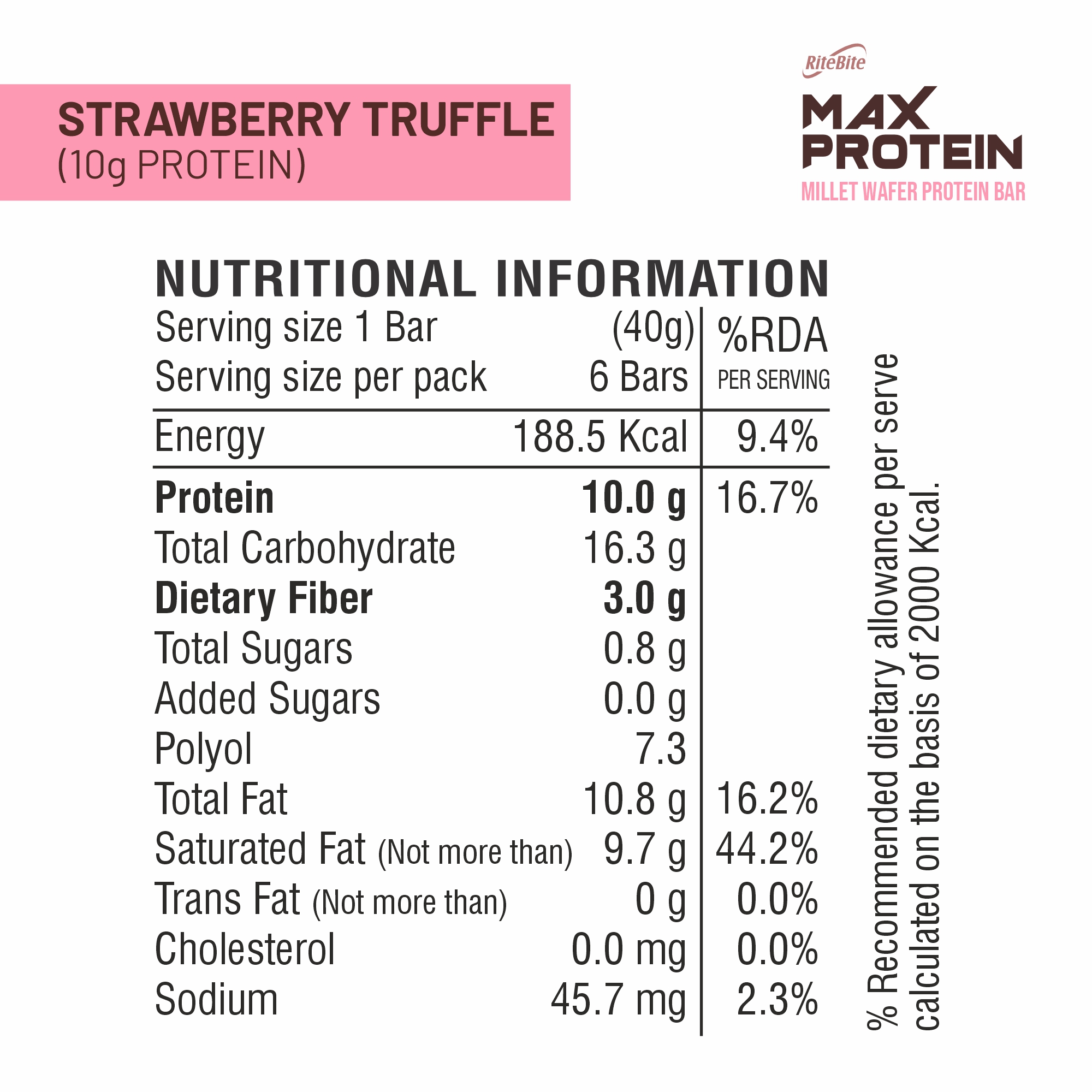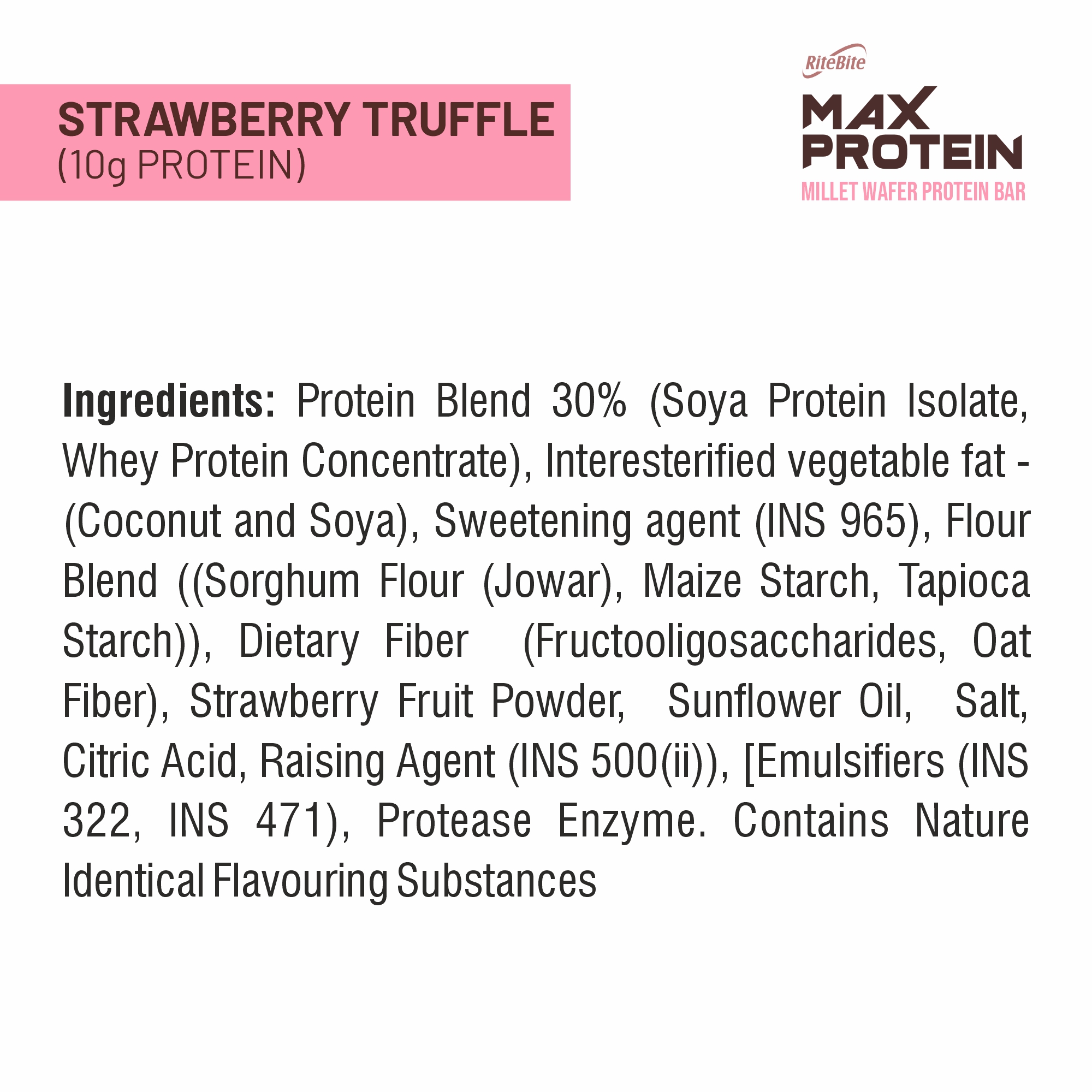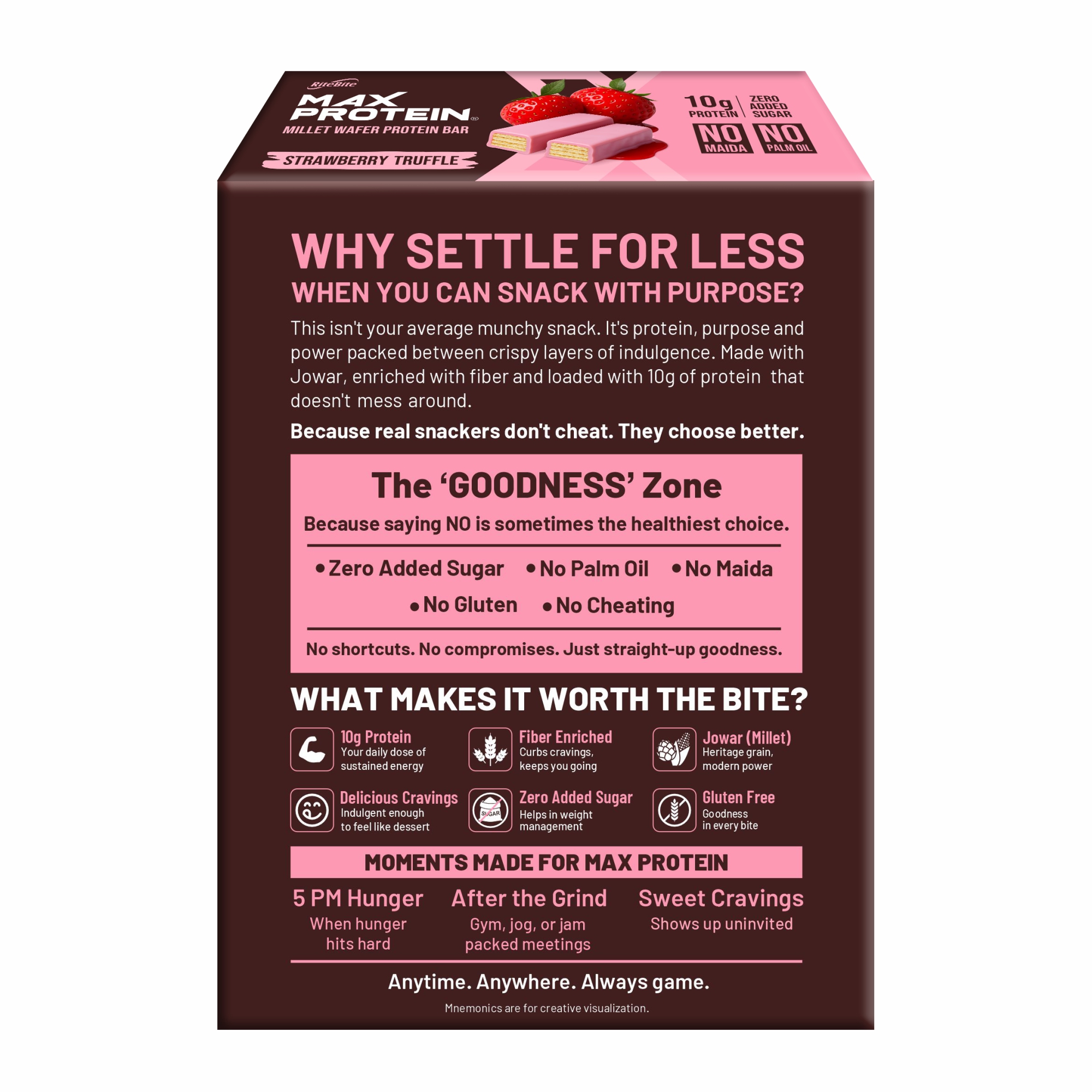 RiteBite Max Protein RiteBite Max Protein Strawberry Truffle Millet Wafer Bars (Pack of 6), 10g Protein, No Maida, No Palm Oil, Zero Added Sugar, Super Healthy Wafer Snack for You, 240gm