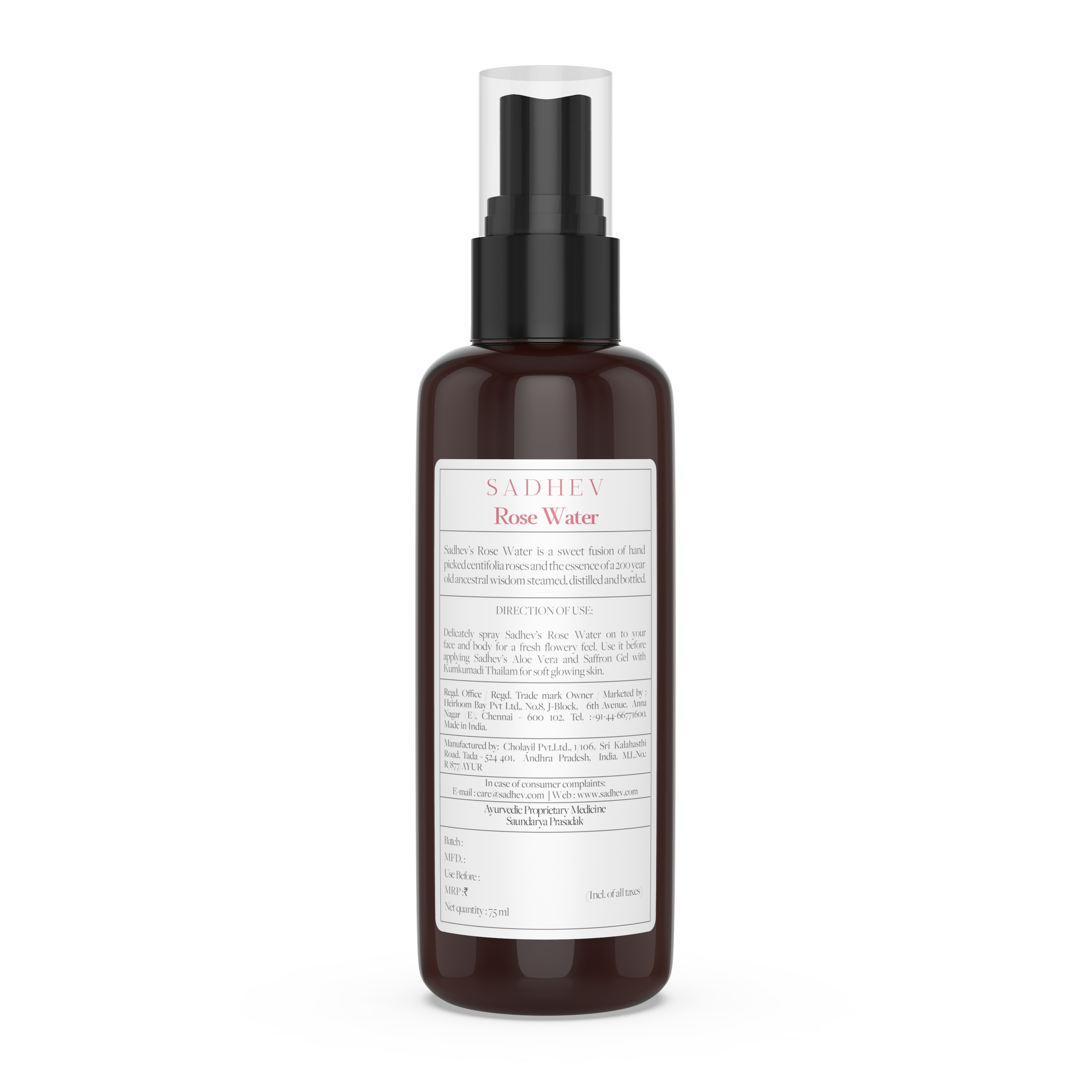 Usage ritualDelicately spray Sadhev’s Rose Water on to your face and body for a fresh flowery feel. Use it before applying Sadhev’s Aloe Vera and Saffron Gel with Kumkumadi Thailam for soft glowing skin.