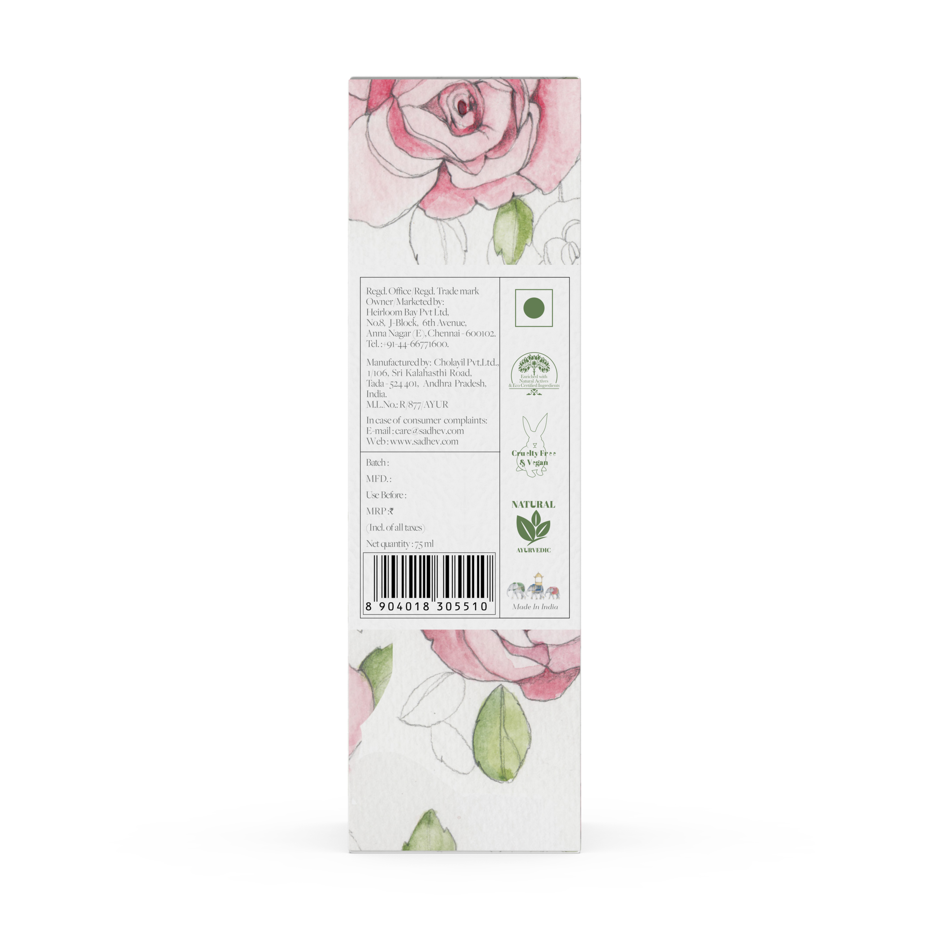 Sadhevs Rose Water uses blooms that are carefully plucked and gathered from the mountains. These petals are then steeped in pure, untouched water and are steam distilled to bottle the perfect nectar for your skin. It is carefully crafted, using timeless ancient methods prescribed by Ayurveda using handpicked ingredients that are organically grown and ethically sourced from our very own farm Sadhevana.