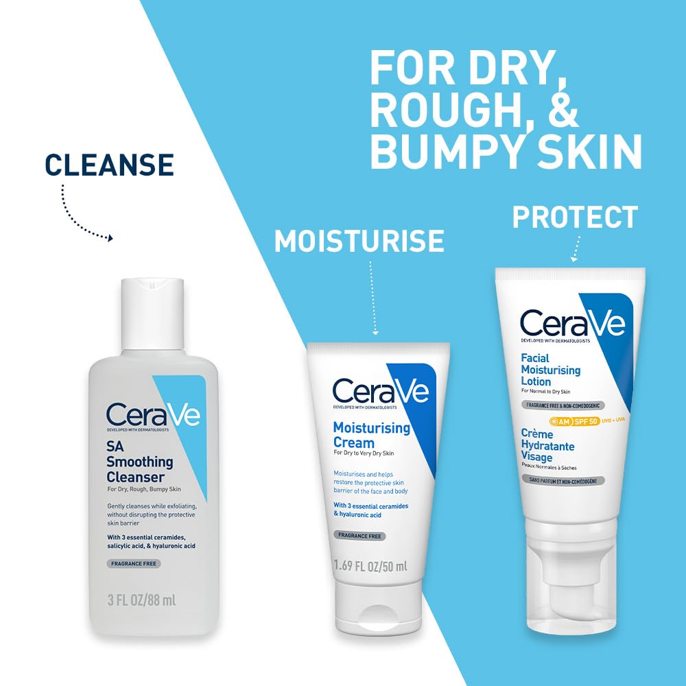 Cerave Sa Smoothing Cleanser Is A Multi-Tasking Skincare Product That Offers Thorough Cleansing As Well As Gentle Exfoliating Results To The Face And Body. Cerave Sa Cleanser Effectively Eliminates Dirt, Oil, Makeup, And Dead Skin Cells From The Face And Body, Corrects Rough And Bumpy Skin Texture, And Leaves You With Smooth, Hydrated, And Soft-Feeling Skin. The Presence Of Salicylic Acid In This Cleanser Helps In Gently Exfoliating Dead Skin Cells And Other Impurities From The Skin Without Disrupting The SkinS Protective Natural Barrier. Developed With Dermatologists, This Cleanser For Rough & Bumpy Skin Is Infused With Three Skin-Identical Ceramides (Eop, Ap, Np) That Protects Your Skin Barrier And Optimally Hydrates The Skin With The Hyaluronic Acid-Infused Formula. This Cleanser Contains No Harsh Microbeads And Works Gently On The Skin. Its Non-Comedogenic, Allergy-Tested, And Fragrance-Free? Skincare Formula Cleanses The Skin Without Clogging The Pores And Improves Skin Texture For A Smoother Appearance. Cerave Sa Smoothing Cleanser Is Suitable For Rough, Bumpy, Dry And Acne-Prone Skin As Well.