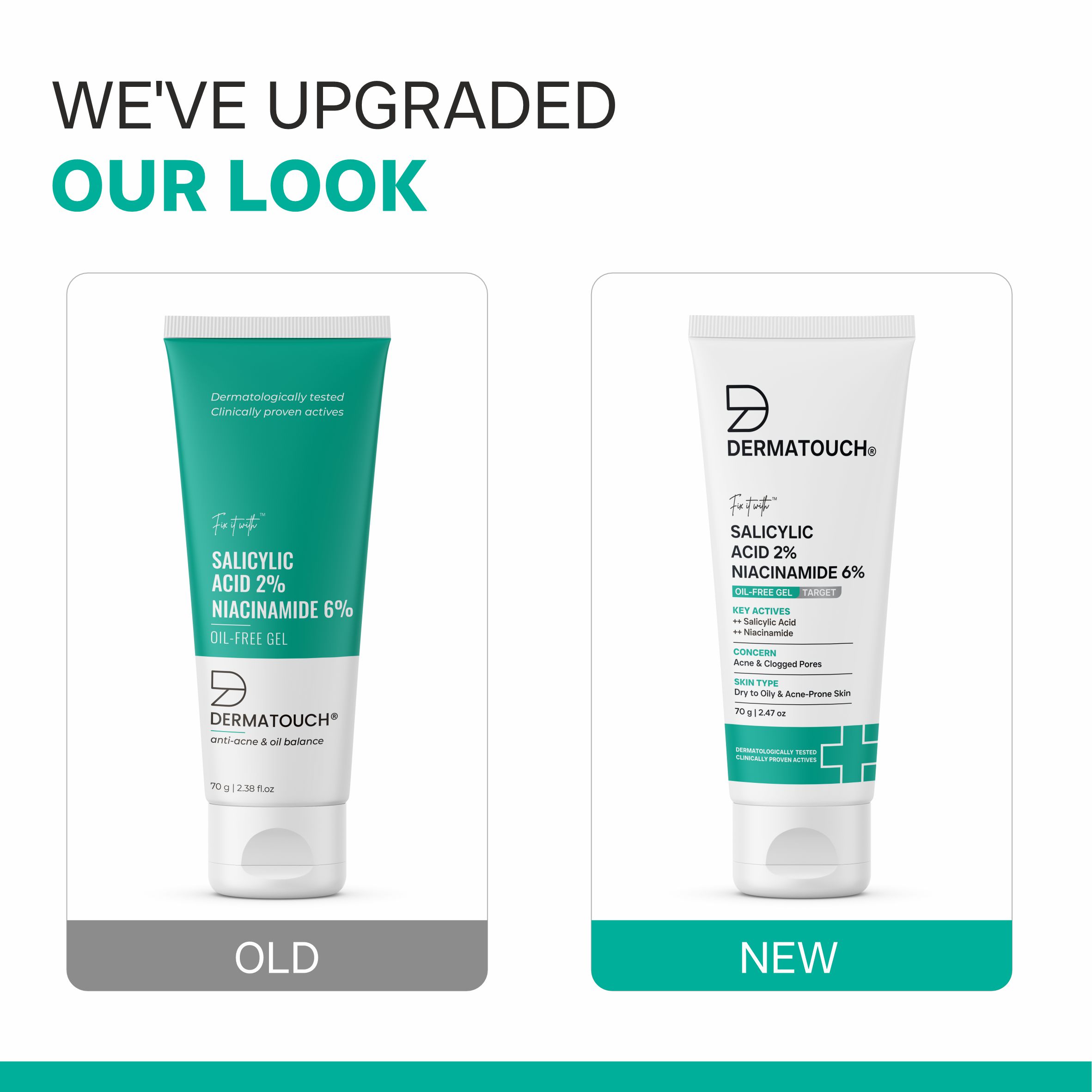 Dermatouch Fix-it-with Salicylic Acid & Niacinamide oil-free gel is dermatologically tested & formulated to reduce the size, redness and swelling of pimples. This advanced gel is a blend of clinically proven actives that boost skin turnover with gentle exfoliation. Dermatouch Fix-it-with Salicylic Acid & Niacinamide Oil-free gel has skin soothing properties and combats skin irritants while balancing skin’s texture.