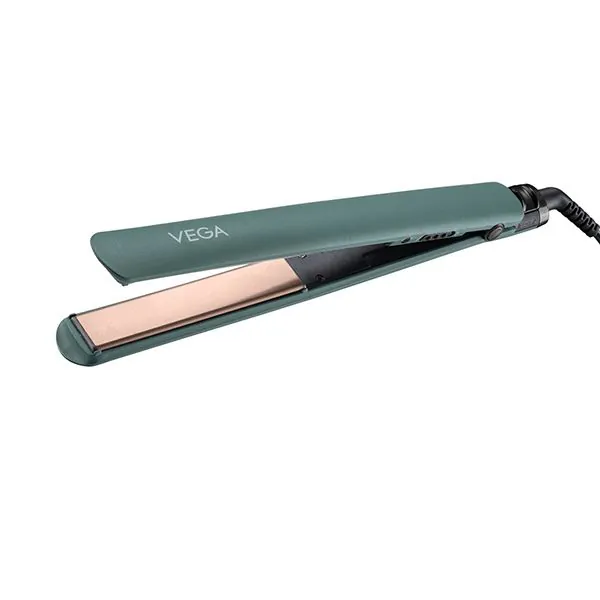 Ultra-fast, salon smooth and silky straight hair, Vega Salon Smooth Hair Straightener is an innovative introduction to attain optimal results. Featuring Ceramic Coated Plates for even heat distribution, the hair straightener promises you silky straight hair in just a few minutes. It is sleek in design which makes it easy to carry on the go while its Easy Lock System assures the ease to close the plates together when not in use for safety and storage convenience. The hair straightener comes with a temperature of 210?C, an ON/OFF Switch with a power indicator light and a 360° Swivel Cord that rotates conveniently to avoid unnecessary tangles. Now, achieve silky straight hair with salon like results