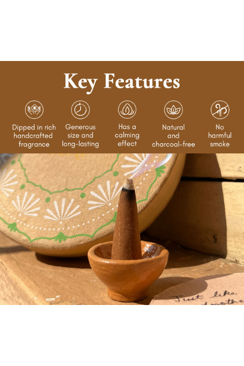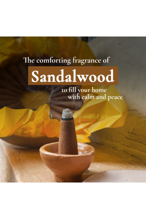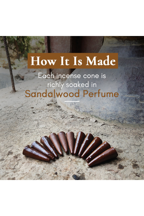 Fill your home with calm and peace: Sandali Dhoop carries the comforting fragrance of Sandalwood to fill your home with calm and peace.Richly dipped in Sandalwood fragrance: Each incense cone is richly soaked in Sandalwood perfume handcrafted using the traditional deg-bhapka method.